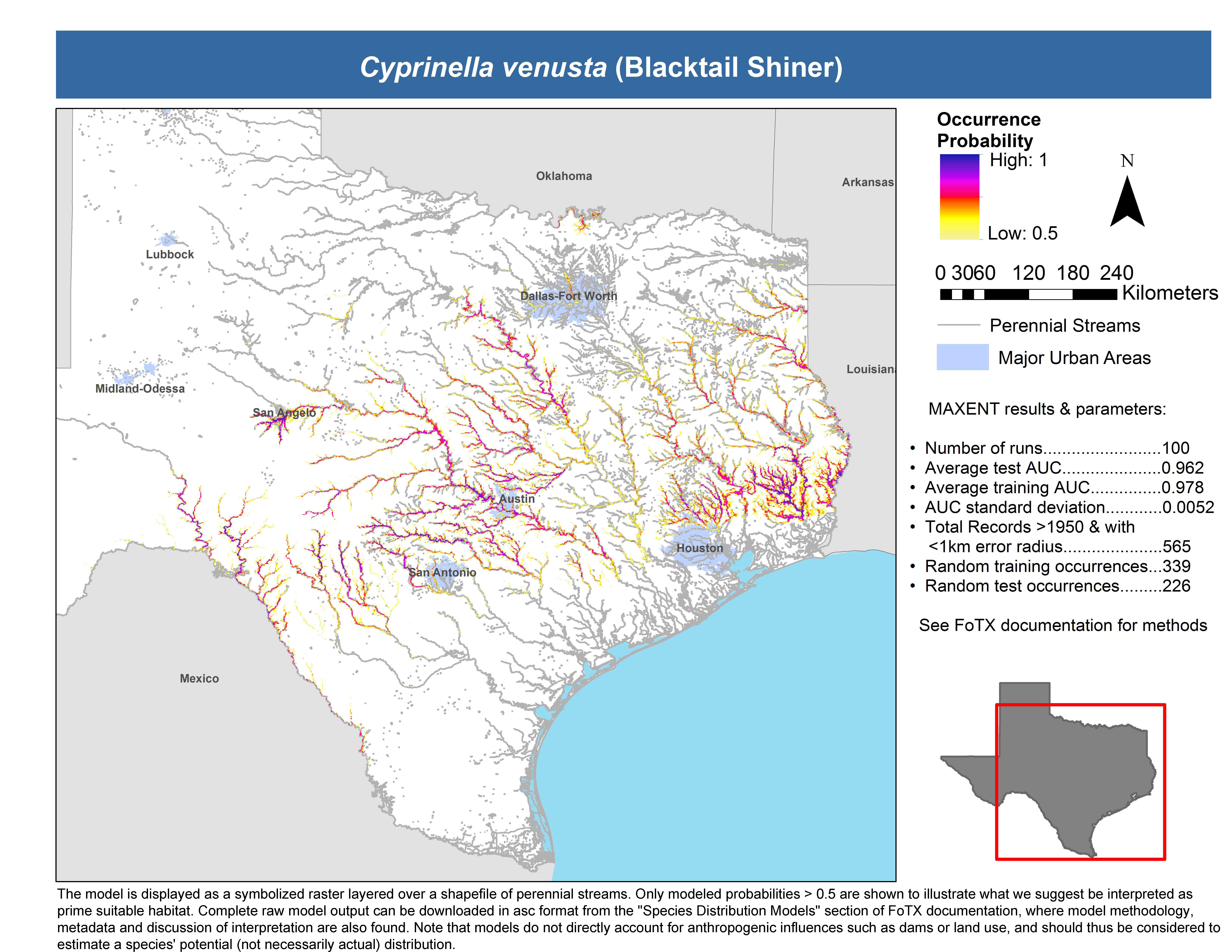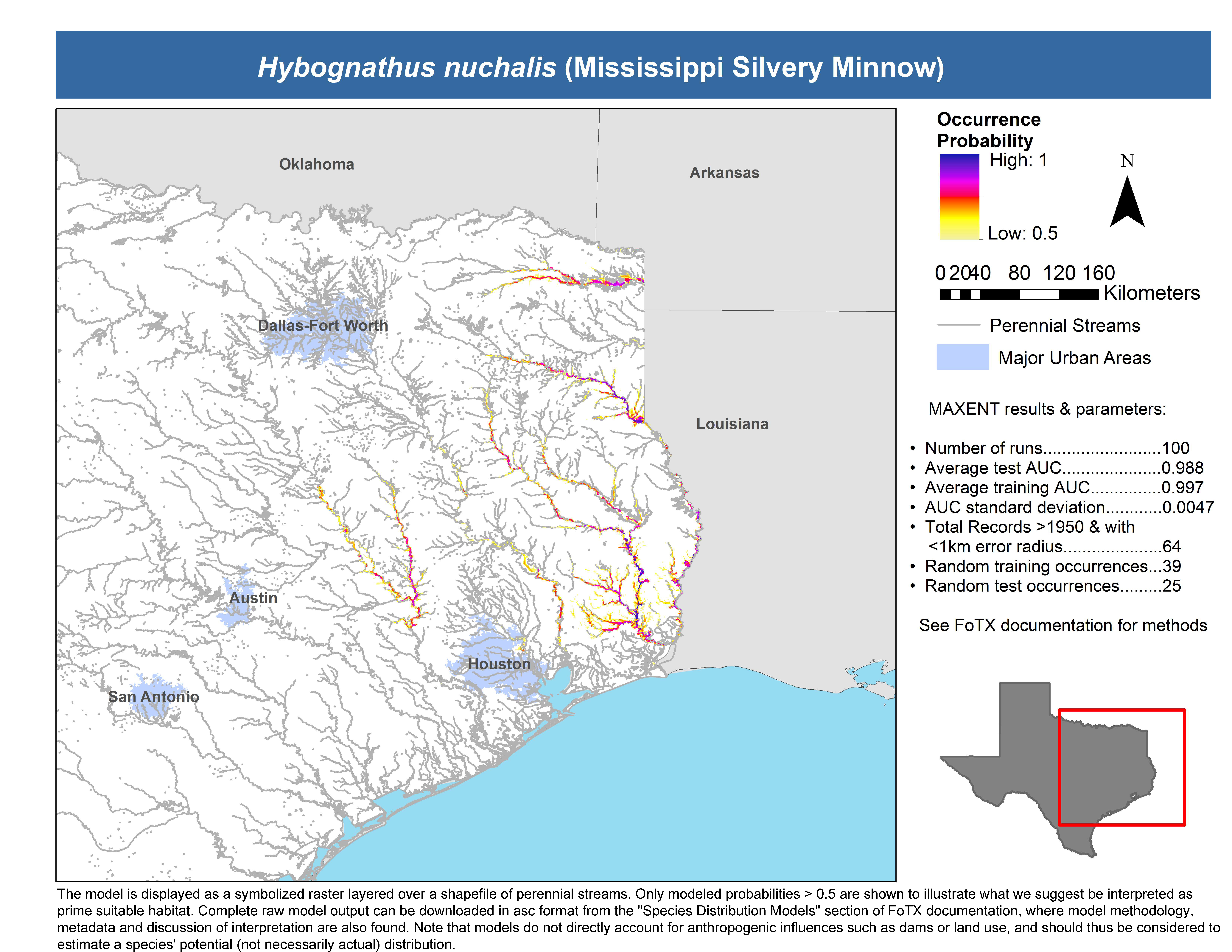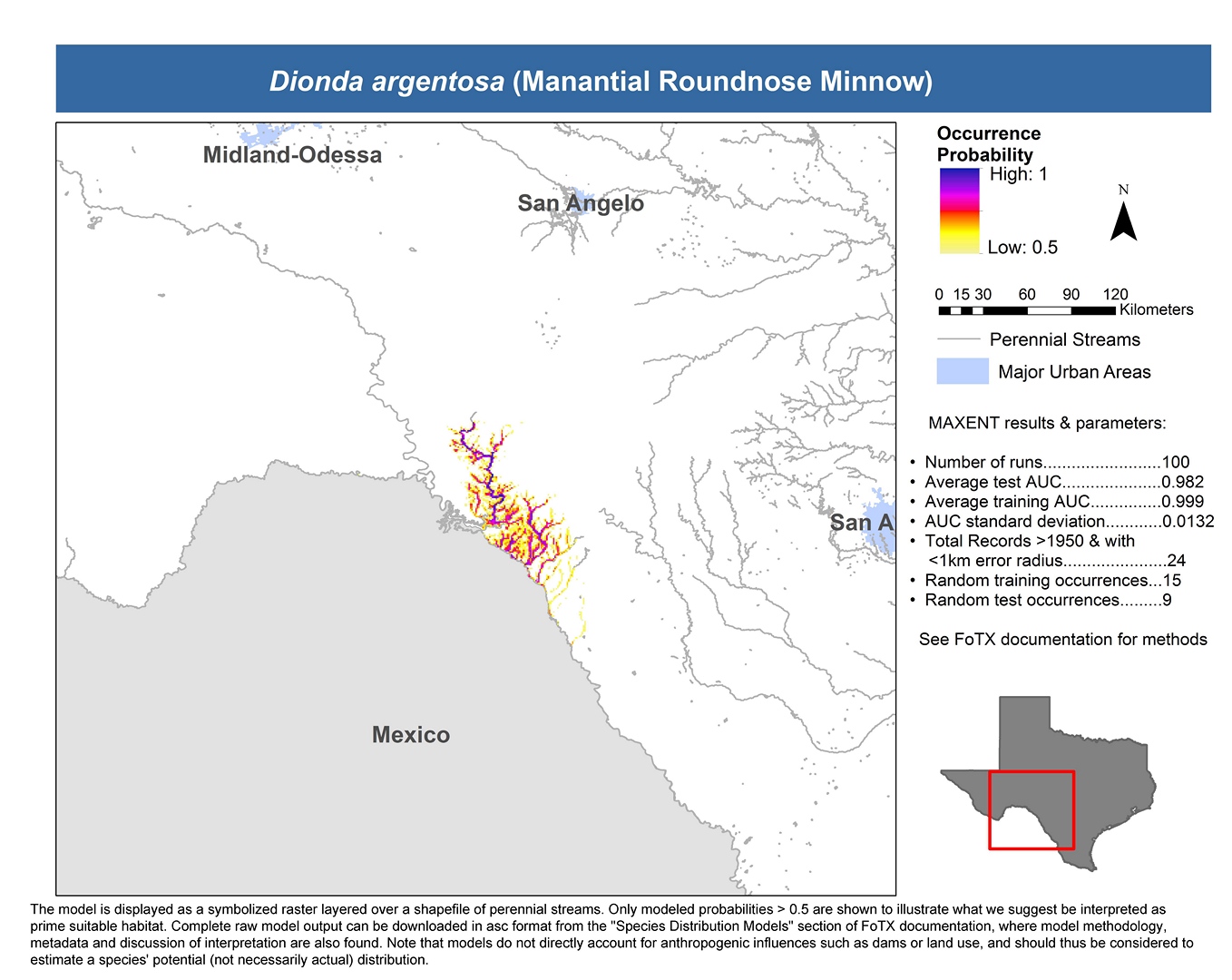 | Cyprinidae | Dionda | argentosa | 01 | zip | jpg | txt | This taxon has been revised in more recent versions of the project data and model results depicted in class 01 models should be considered with that in mind. |