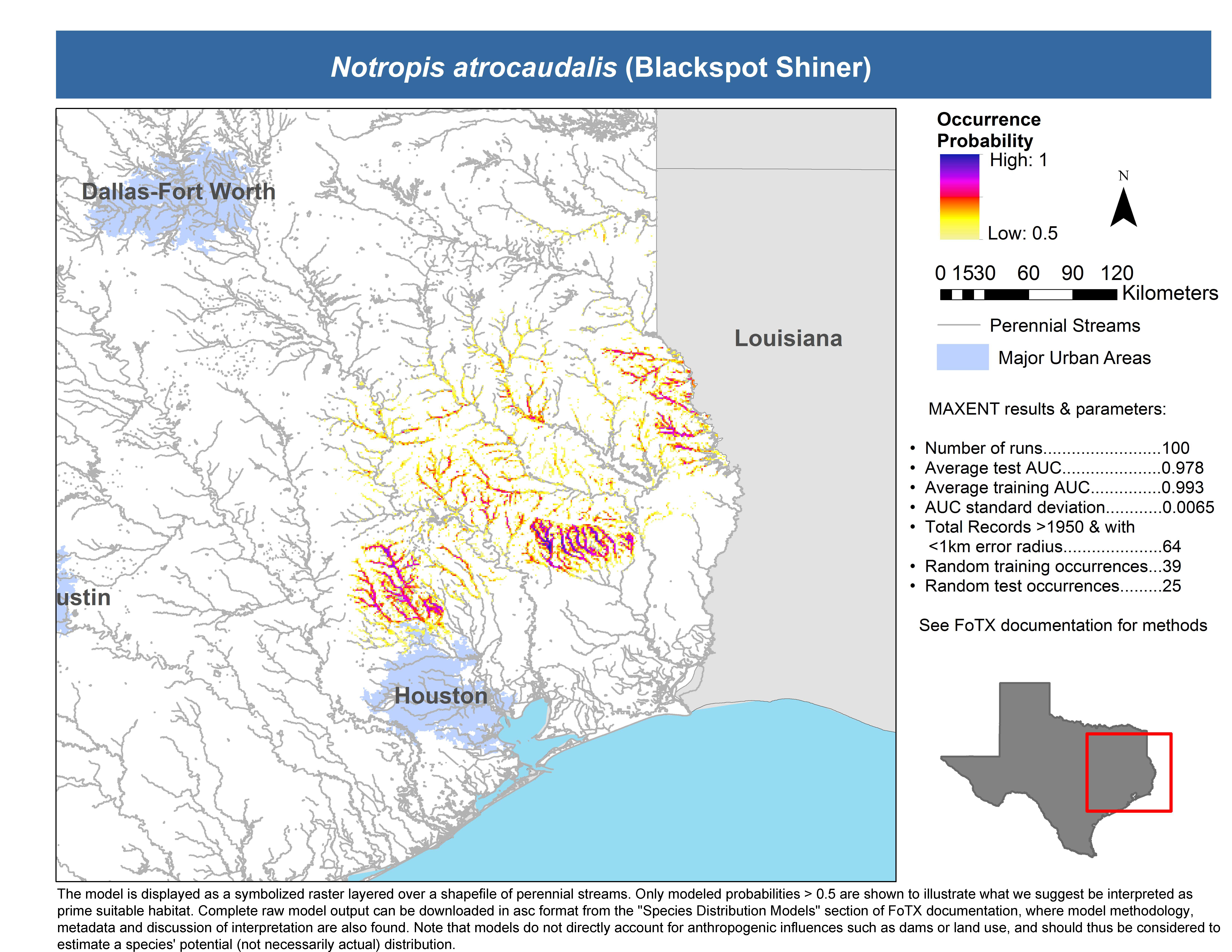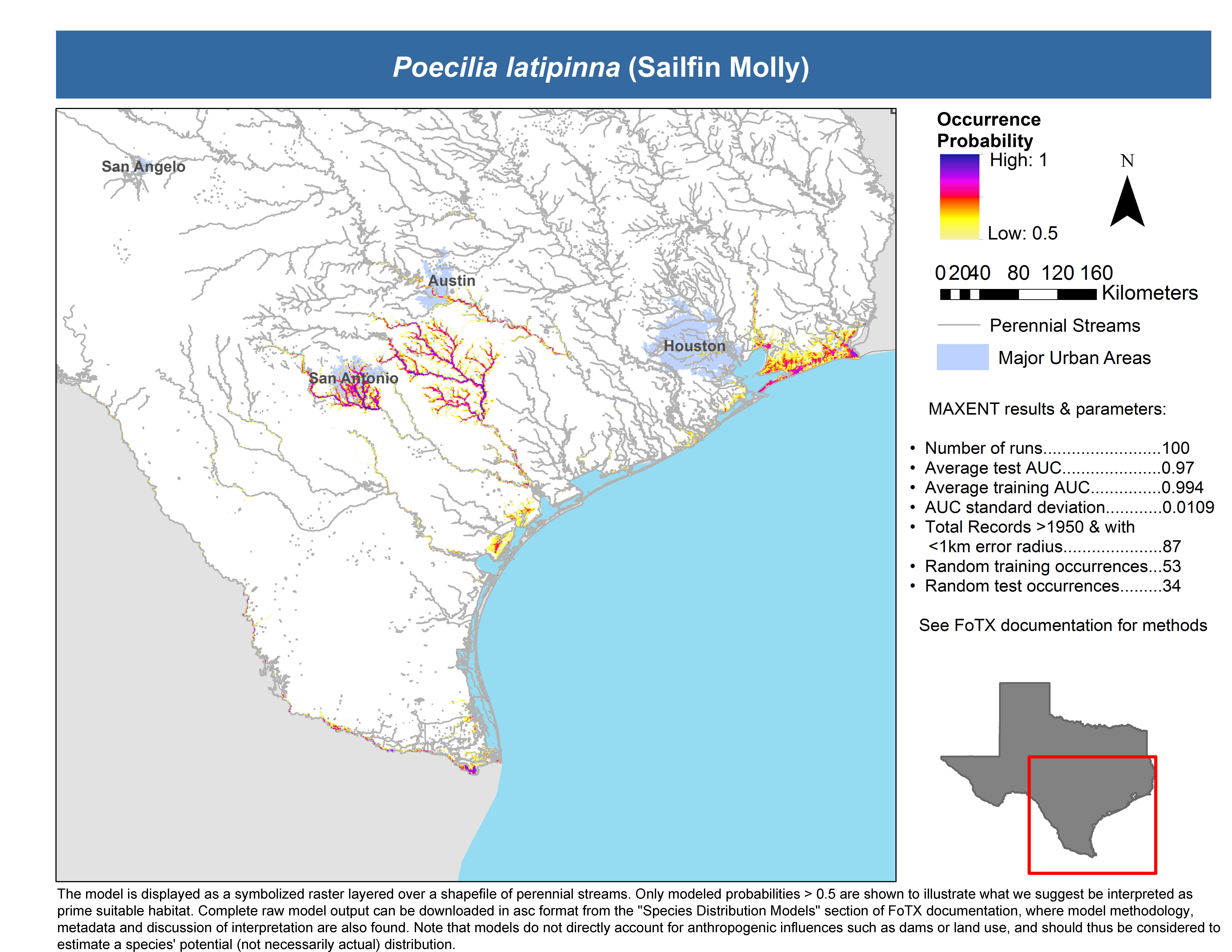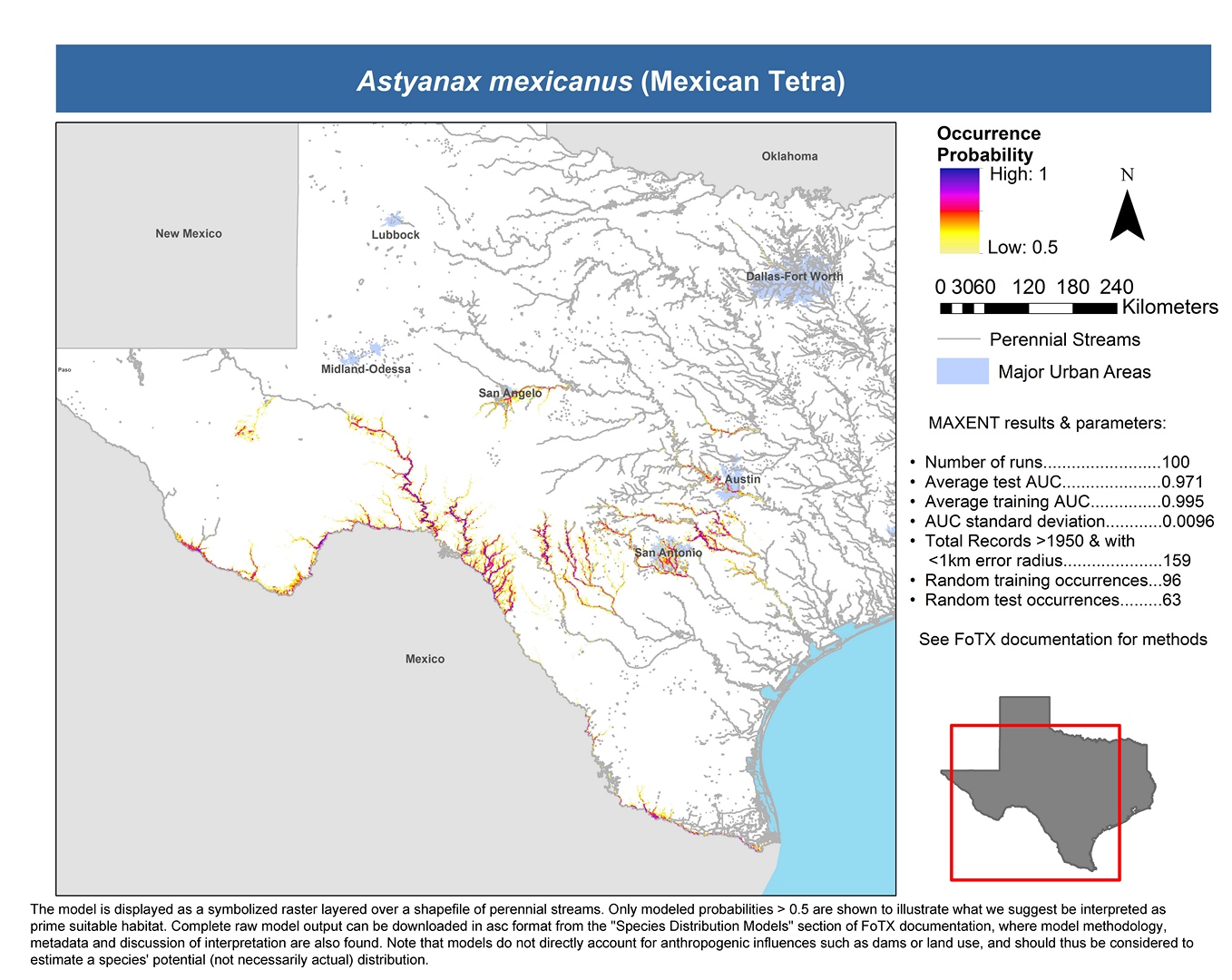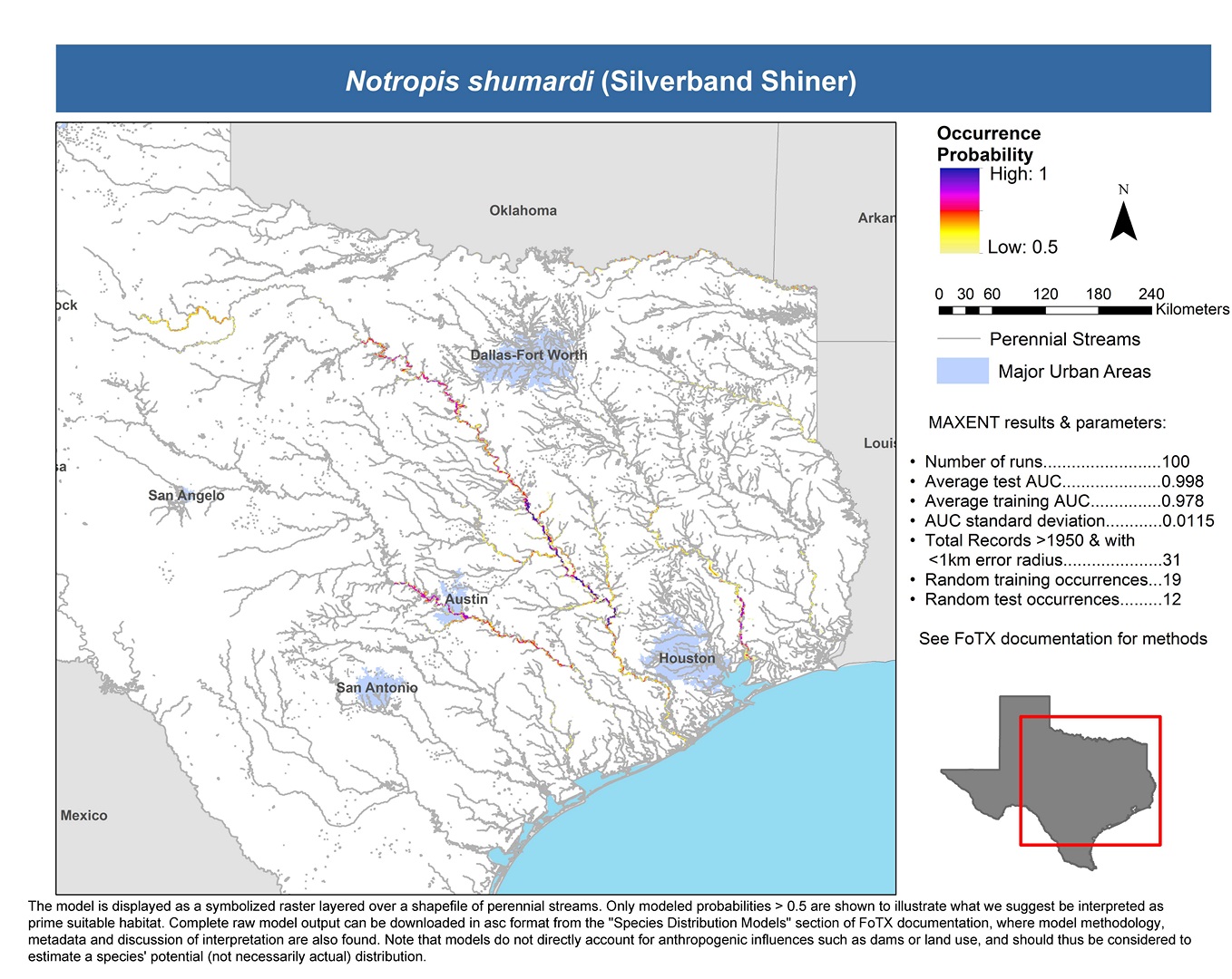 | Cyprinidae | Dionda | argentosa | 01 | zip | jpg | txt | This taxon has been revised in more recent versions of the project data and model results depicted in class 01 models should be considered with that in mind. |