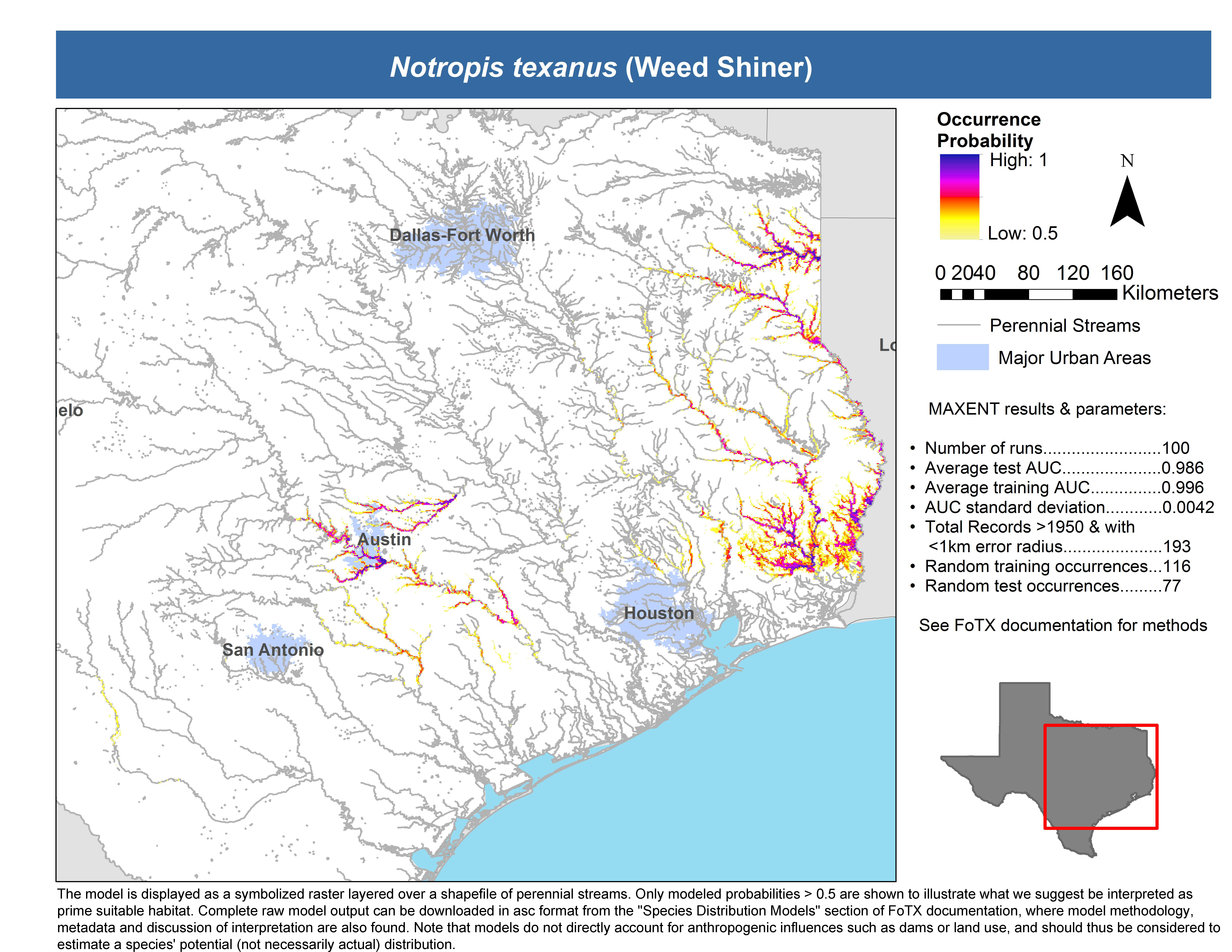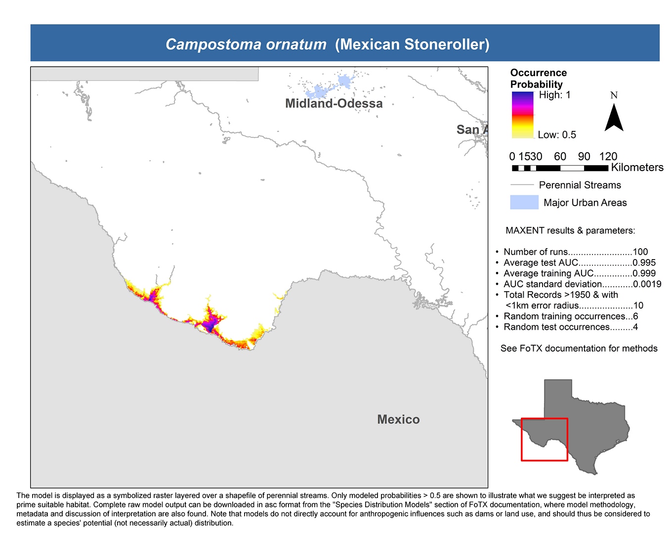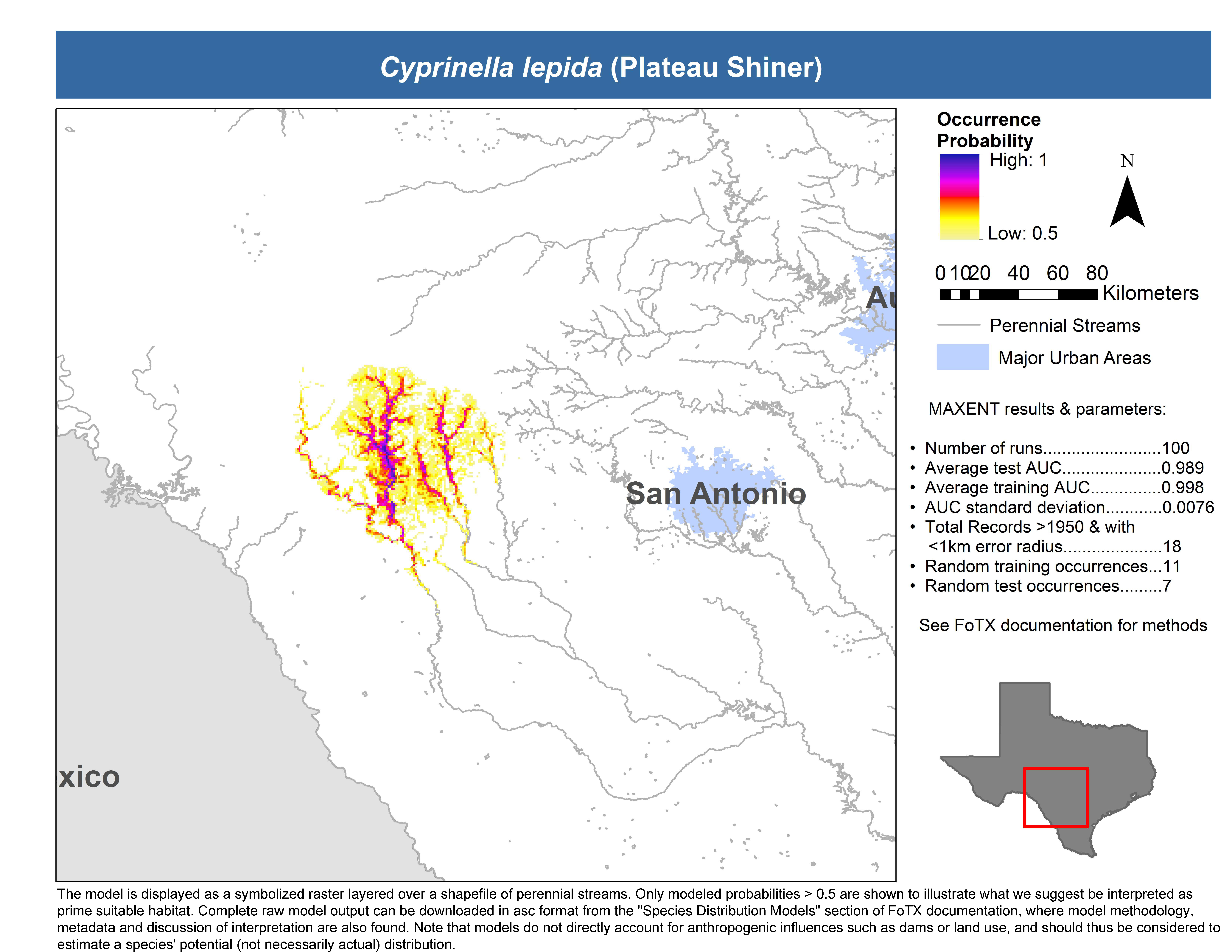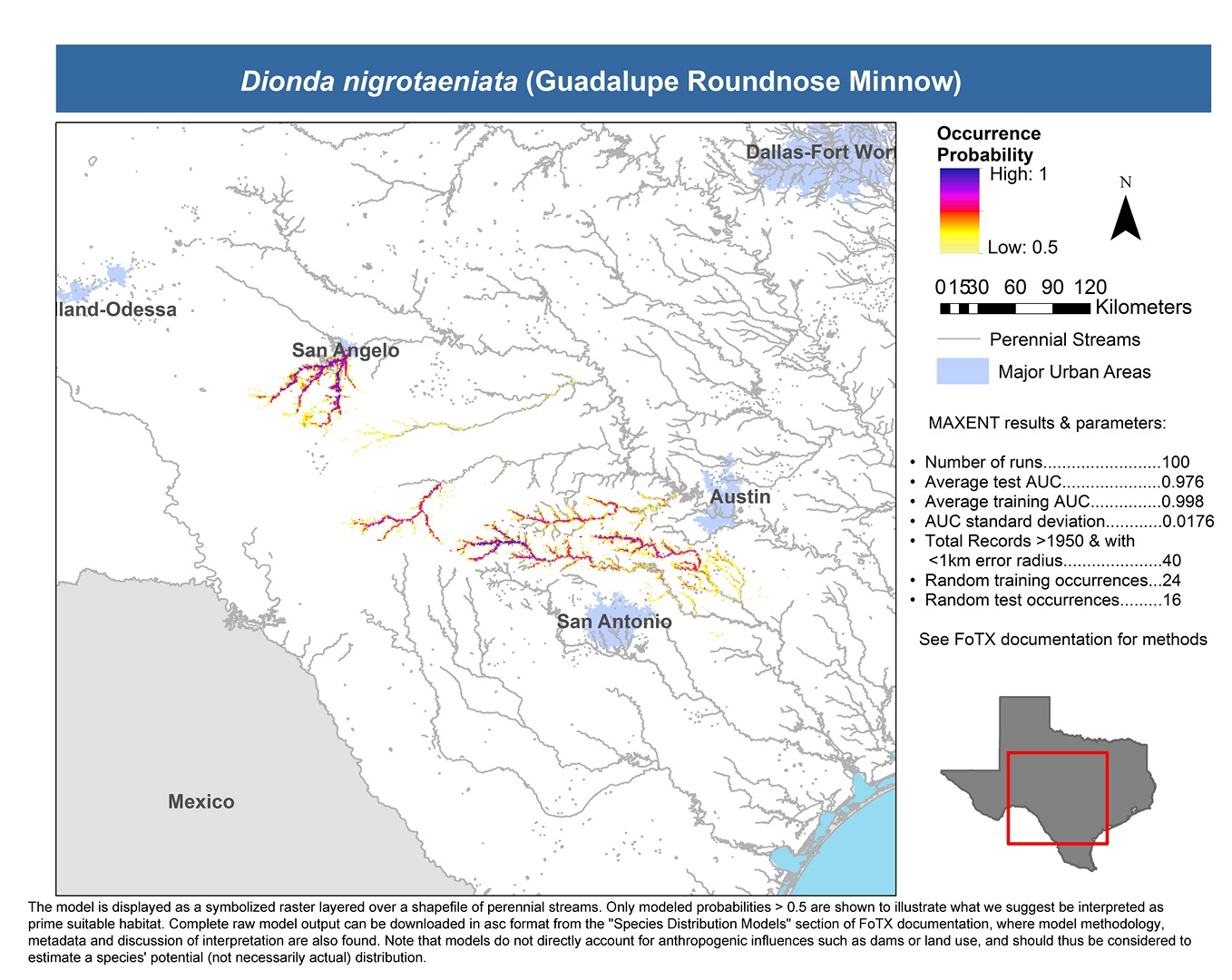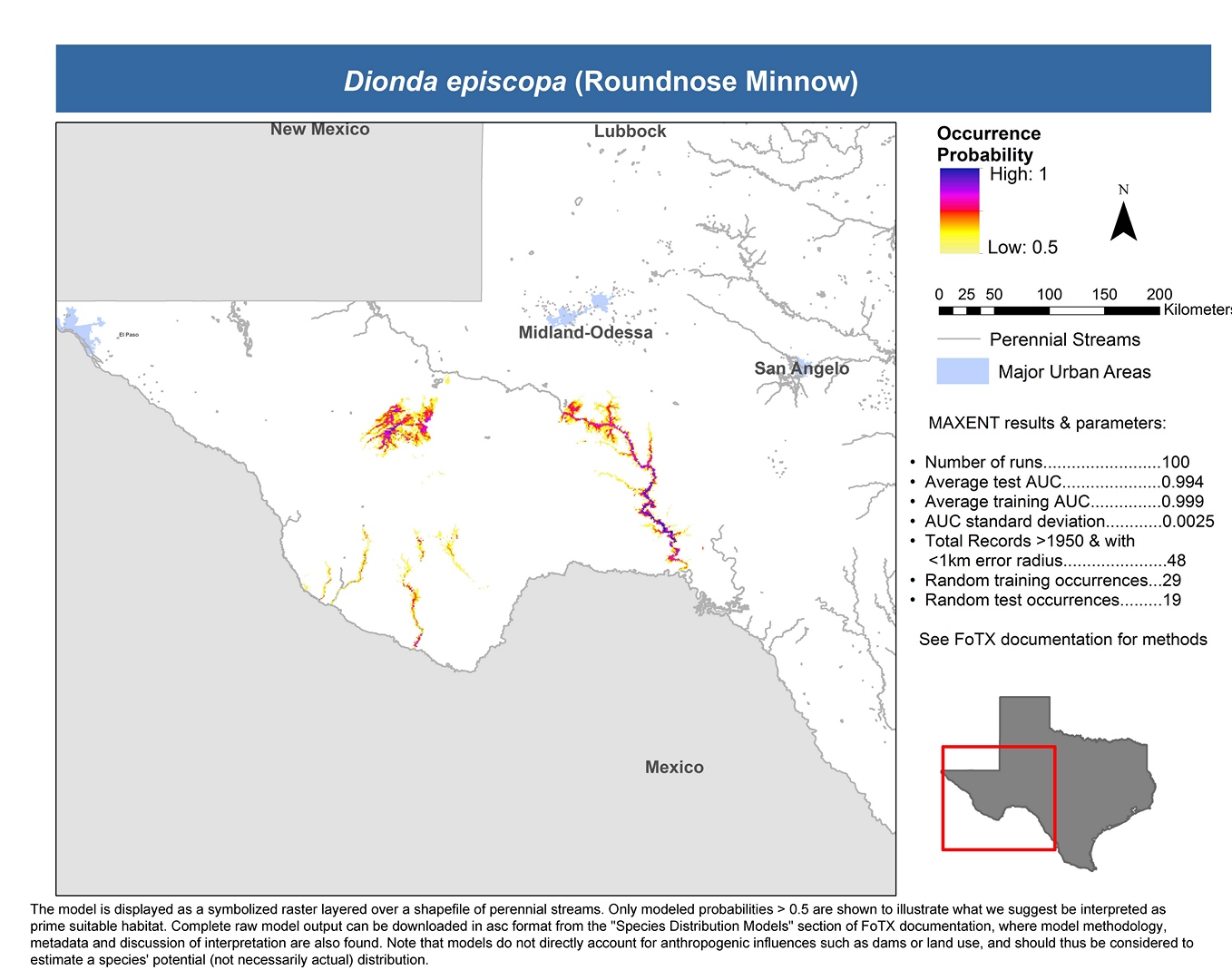 | Cyprinidae | Dionda | episcopa | 01 | zip | jpg | txt | This taxon has been revised in more recent versions of the project data and model results depicted in class 01 models should be considered with that in mind. |