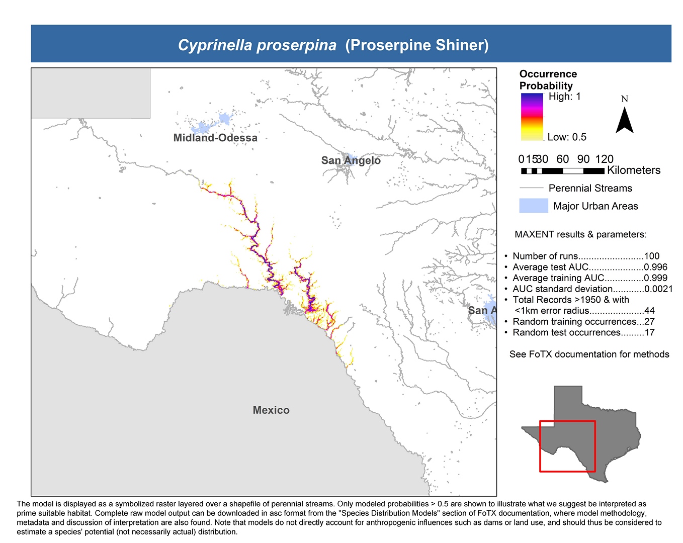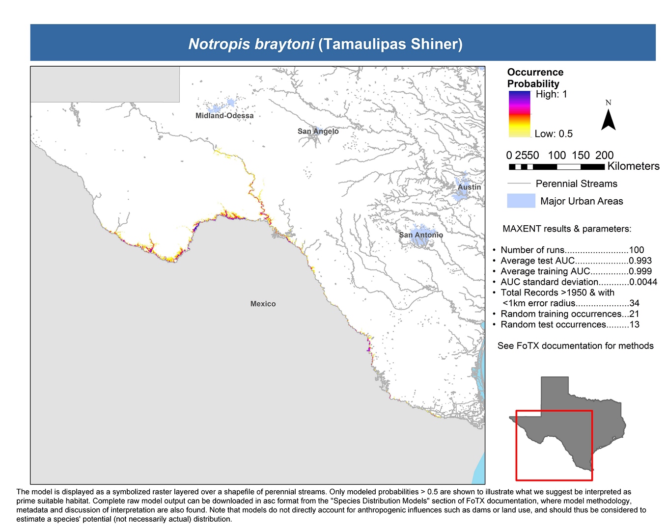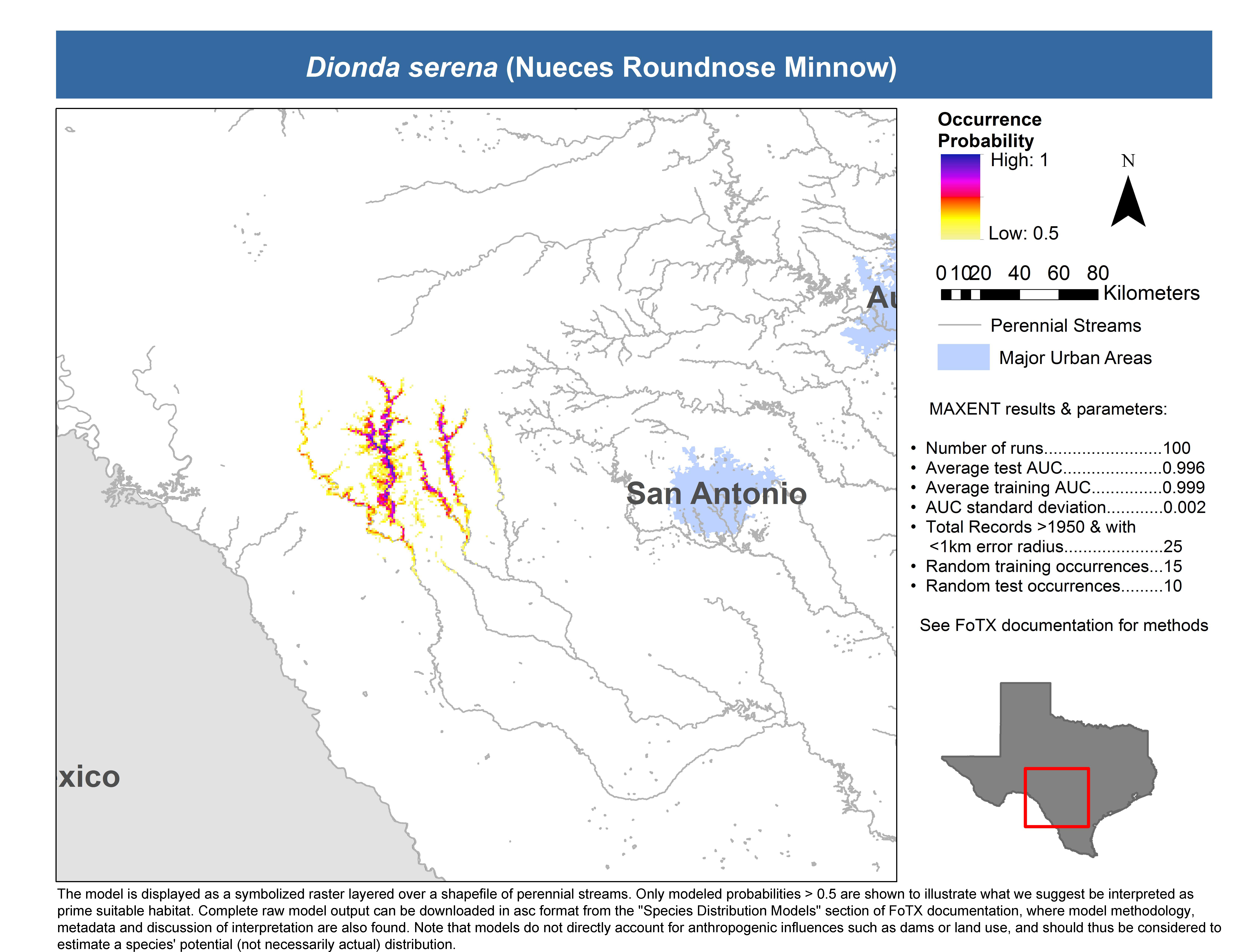 | Cyprinidae | Dionda | serena | 01 | zip | jpg | txt | This taxon has been revised in more recent versions of the project data and model results depicted in class 01 models should be considered with that in mind. |