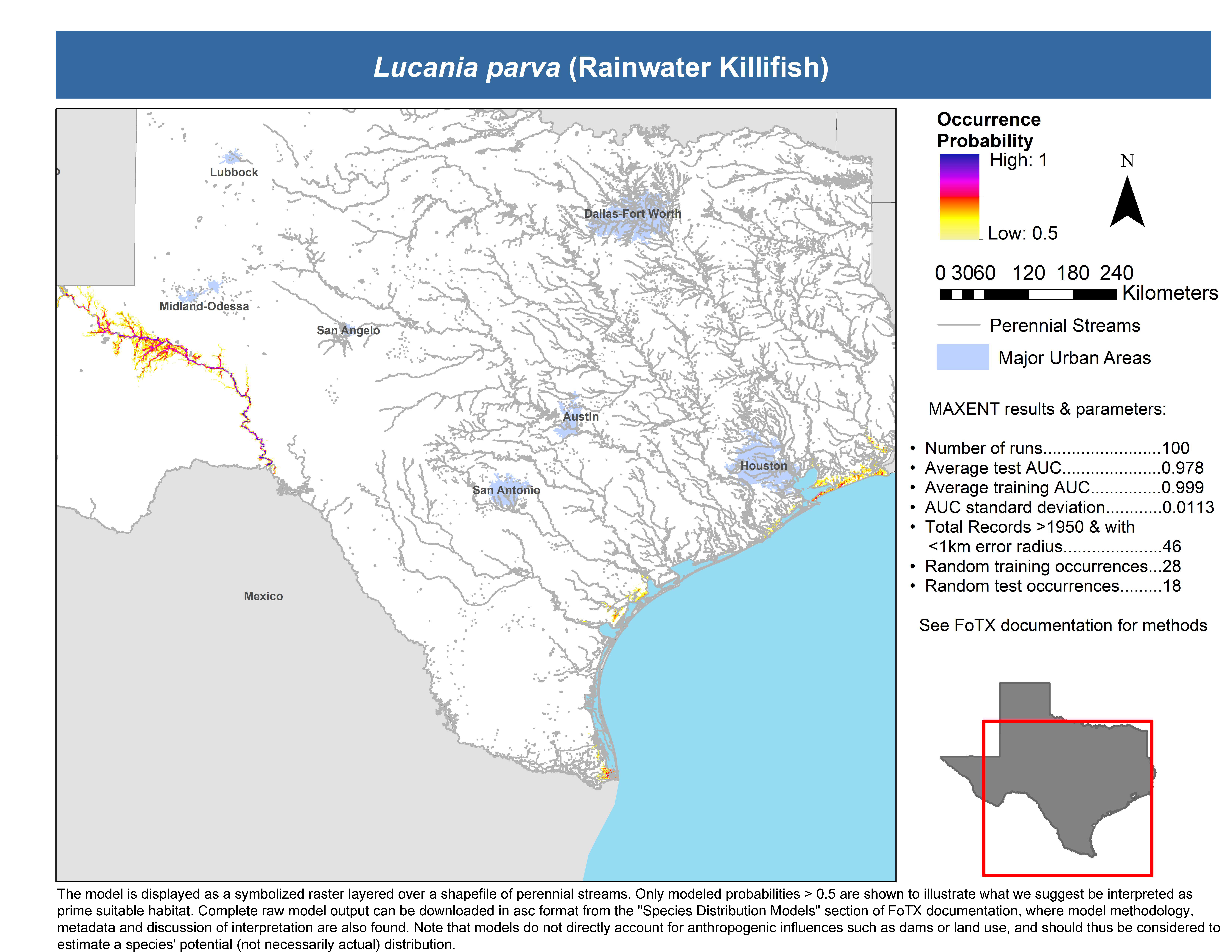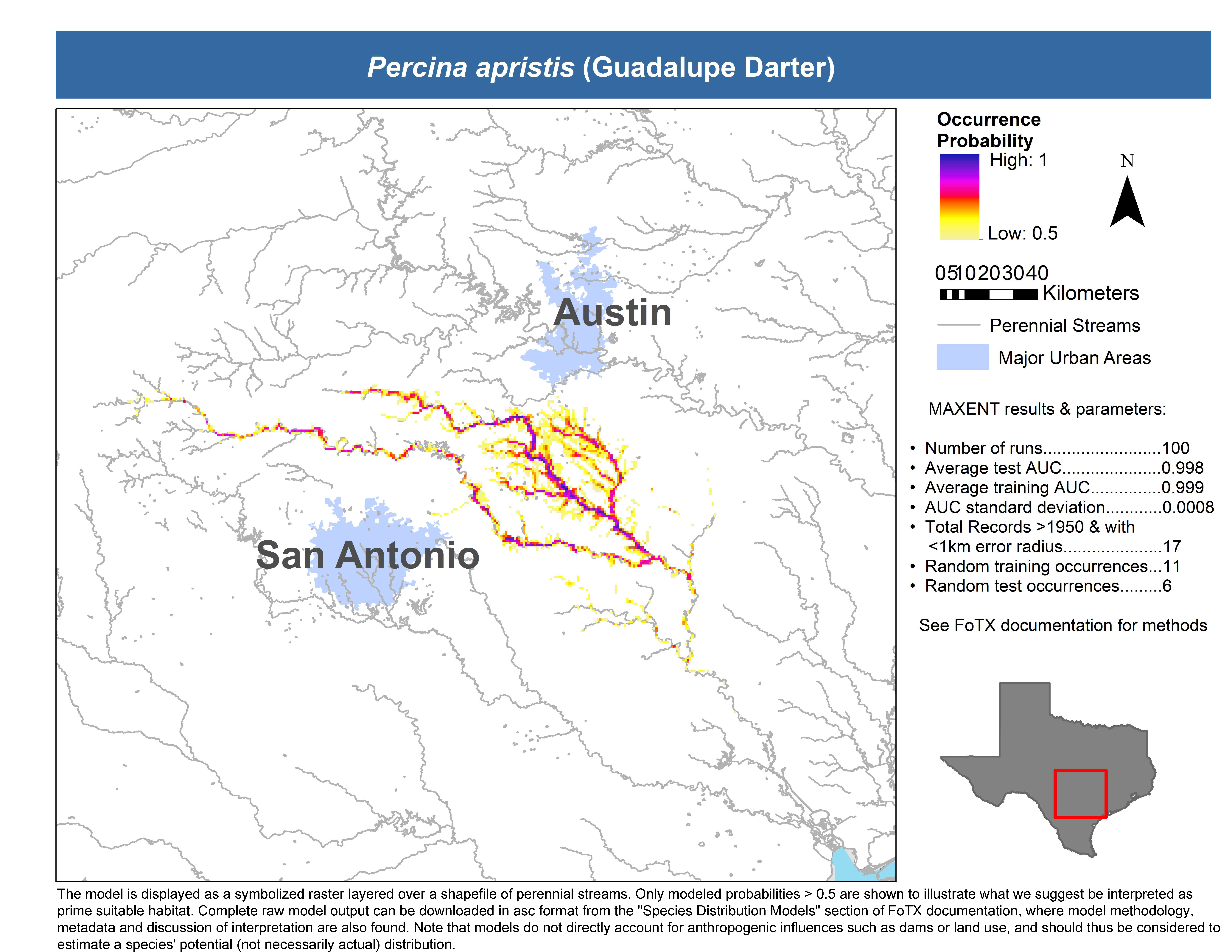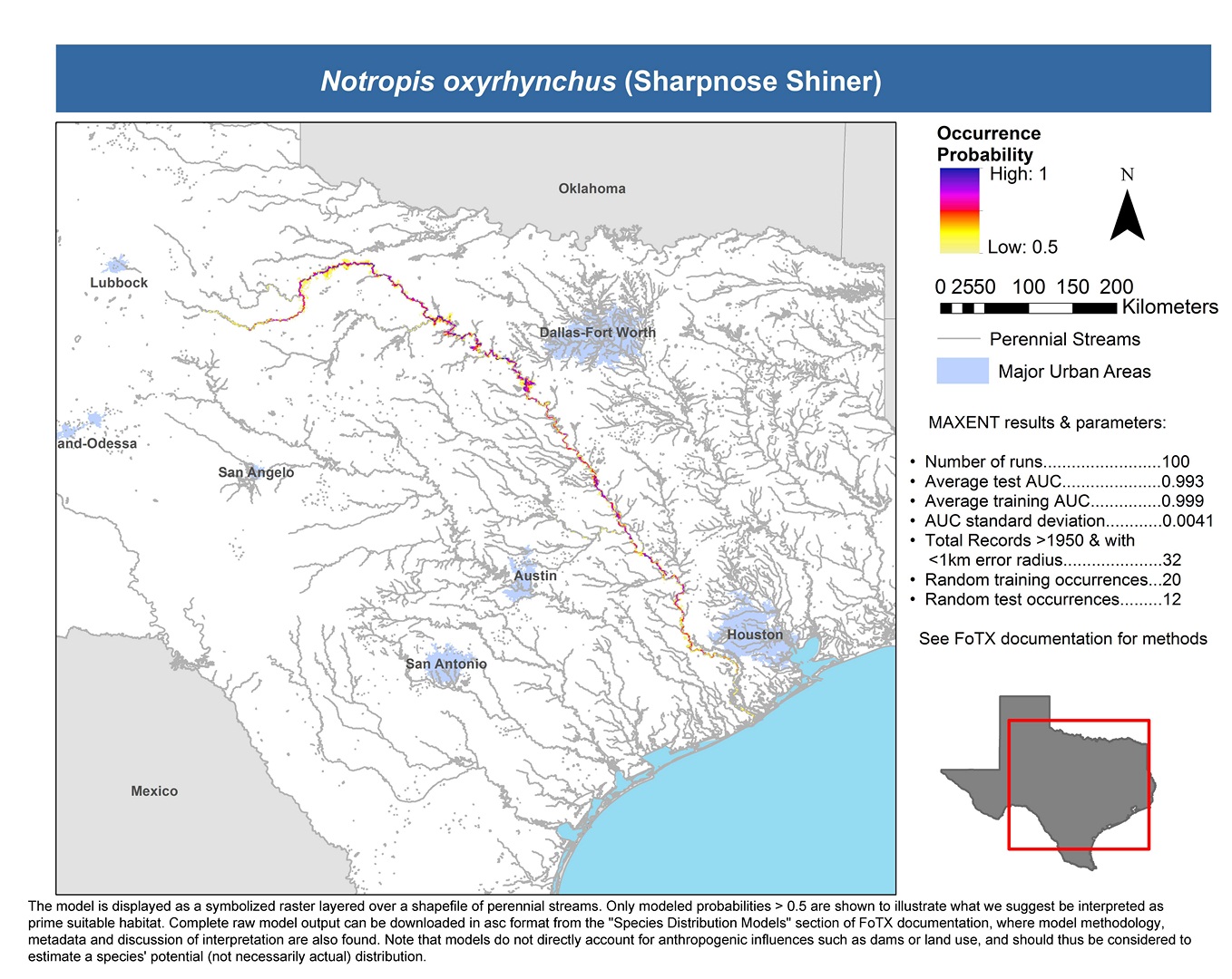 | Cyprinidae | Dionda | serena | 01 | zip | jpg | txt | This taxon has been revised in more recent versions of the project data and model results depicted in class 01 models should be considered with that in mind. |