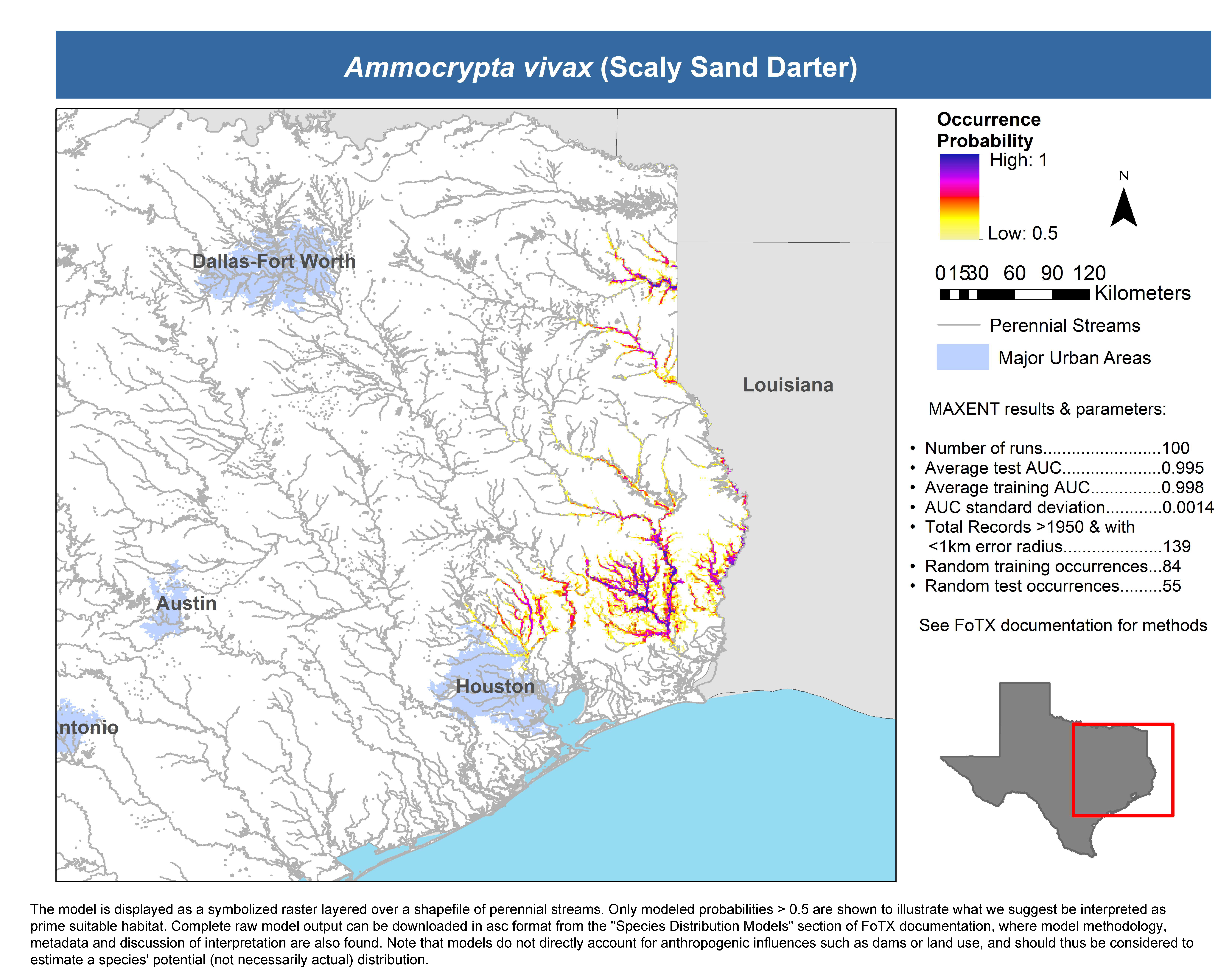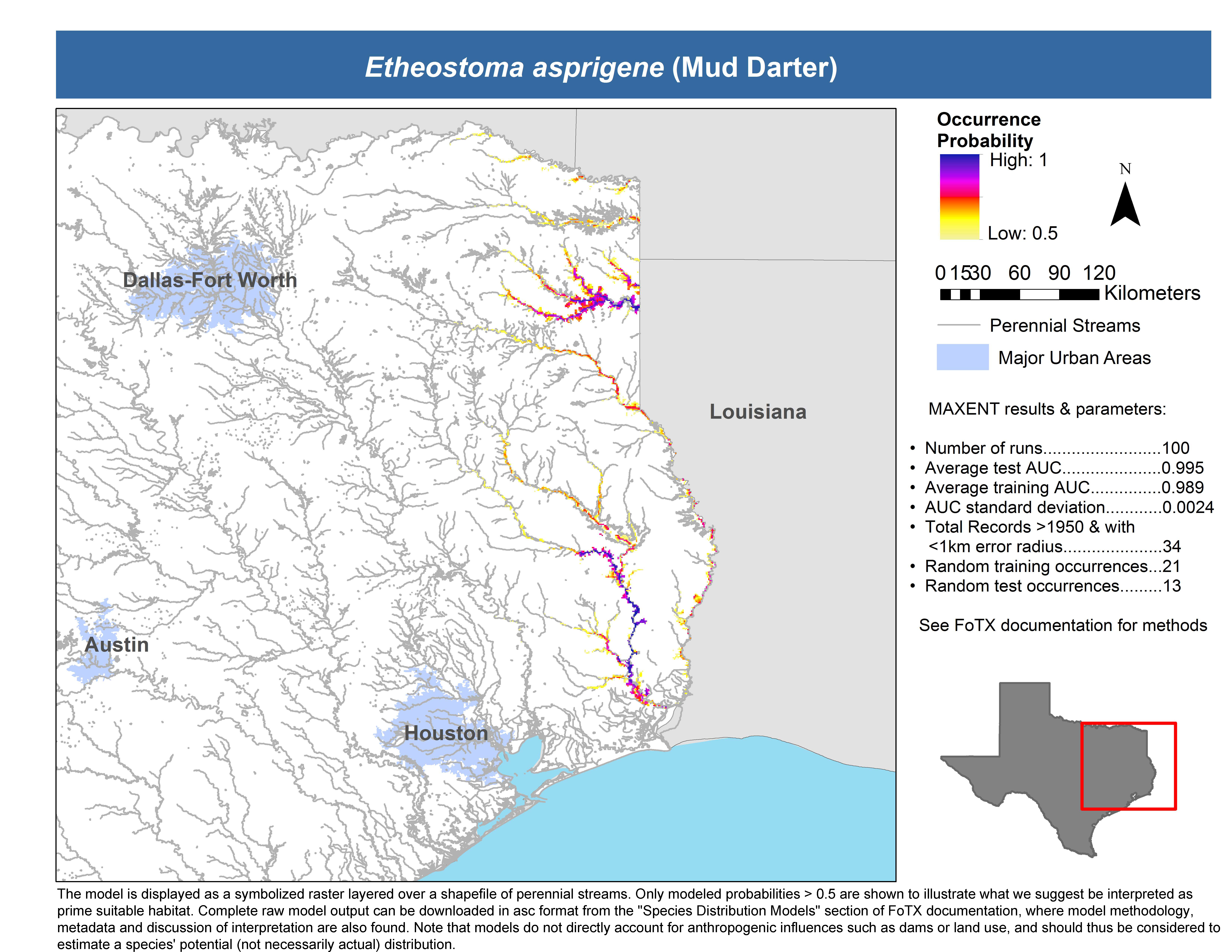| Percidae | Etheostoma | asprigene | 01 | zip | jpg | txt | This taxon has been split in more recent versions of the project data and model results depicted in class 01 models should be considered with that in mind. |