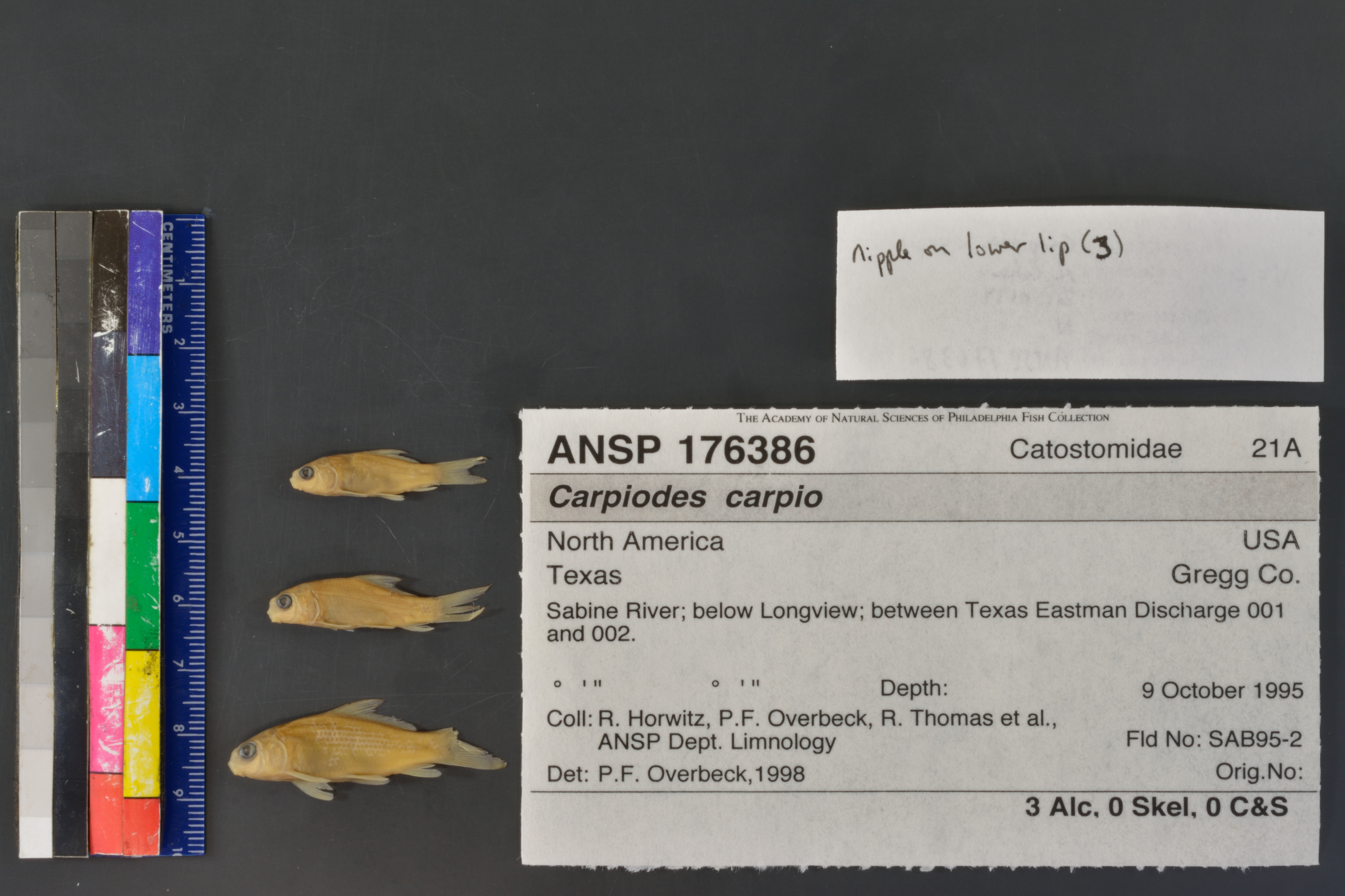 Specimen examined and Id'ed for FoTX project. | specimens small, but nipple on lower lip is apparent and subopercle is triangular