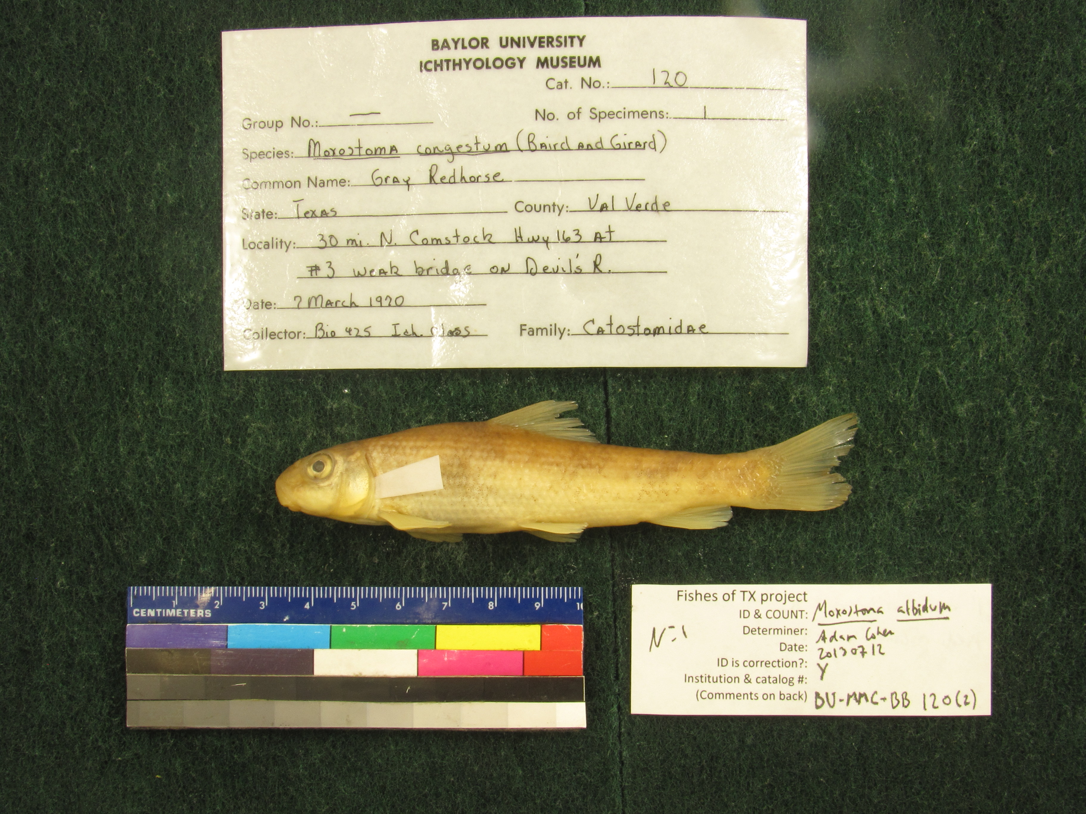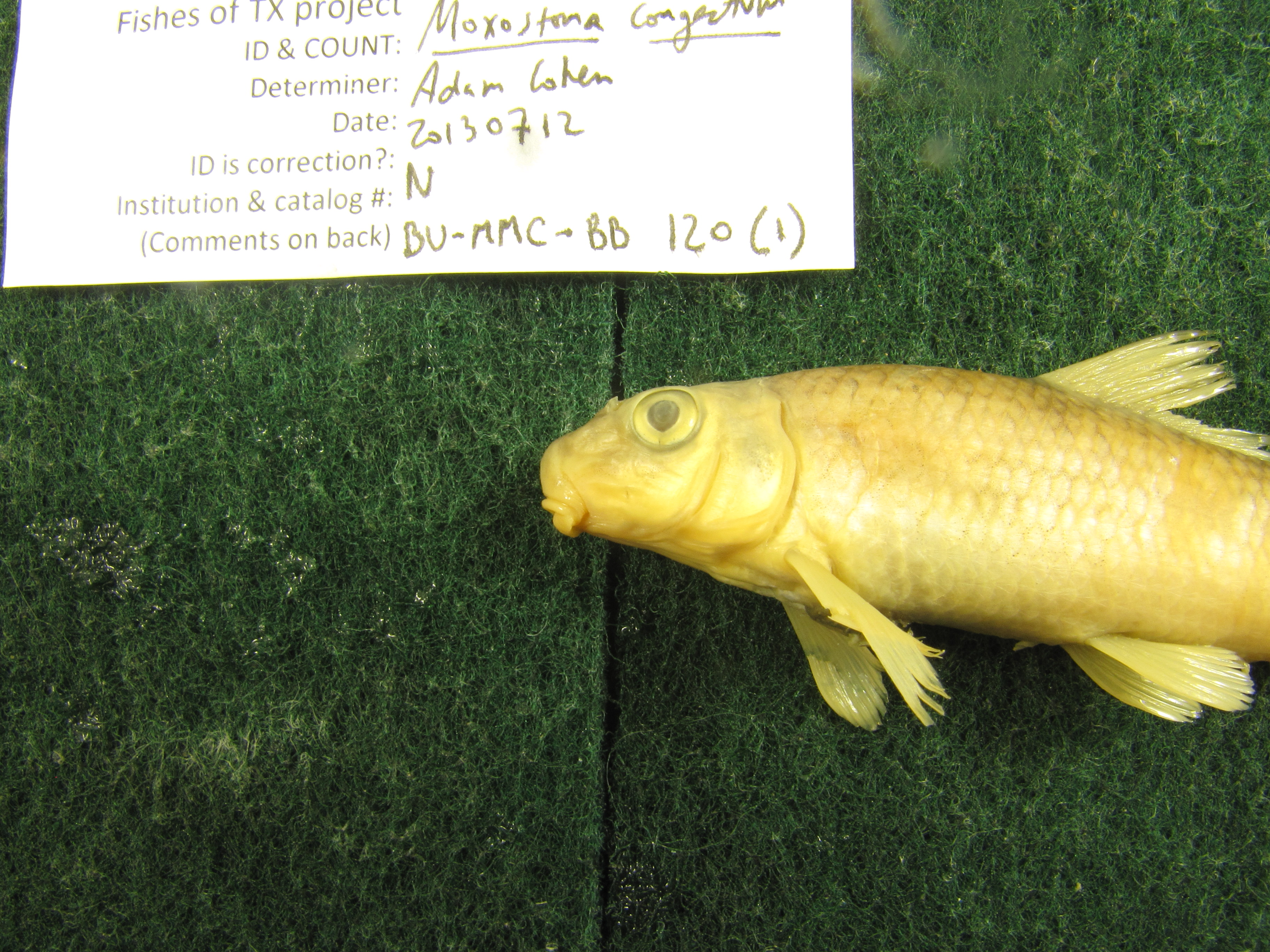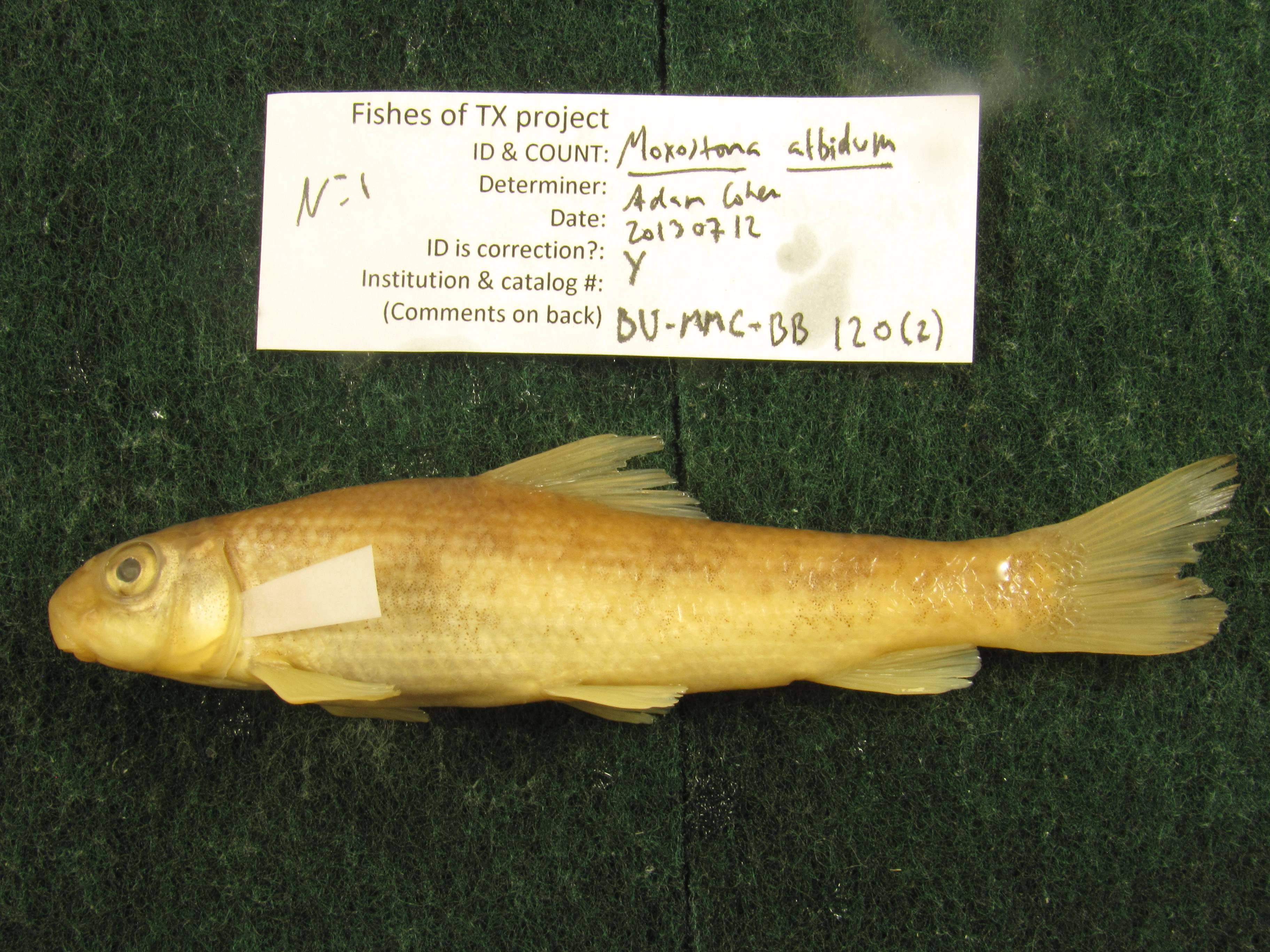 Specimen examined and Id'ed for FoTX project. | 11(2) dorsal rays, 50(1) & 47(1) lateral line scales, 34(1) & 33(1) scales around body