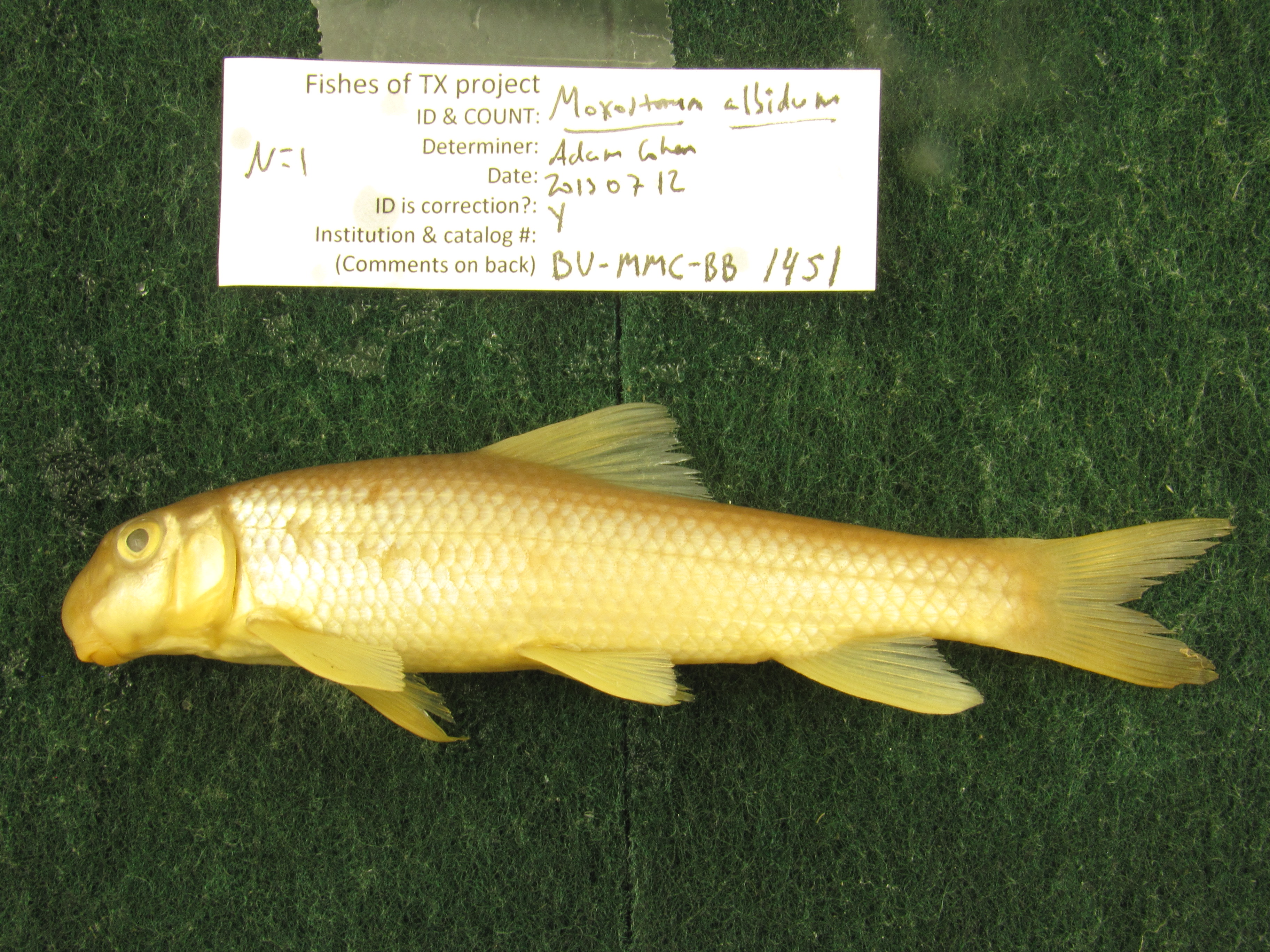 Specimen examined and Id'ed for FoTX project. | 12 dorsal rays, 36 scales around body, 45 lateral series scales