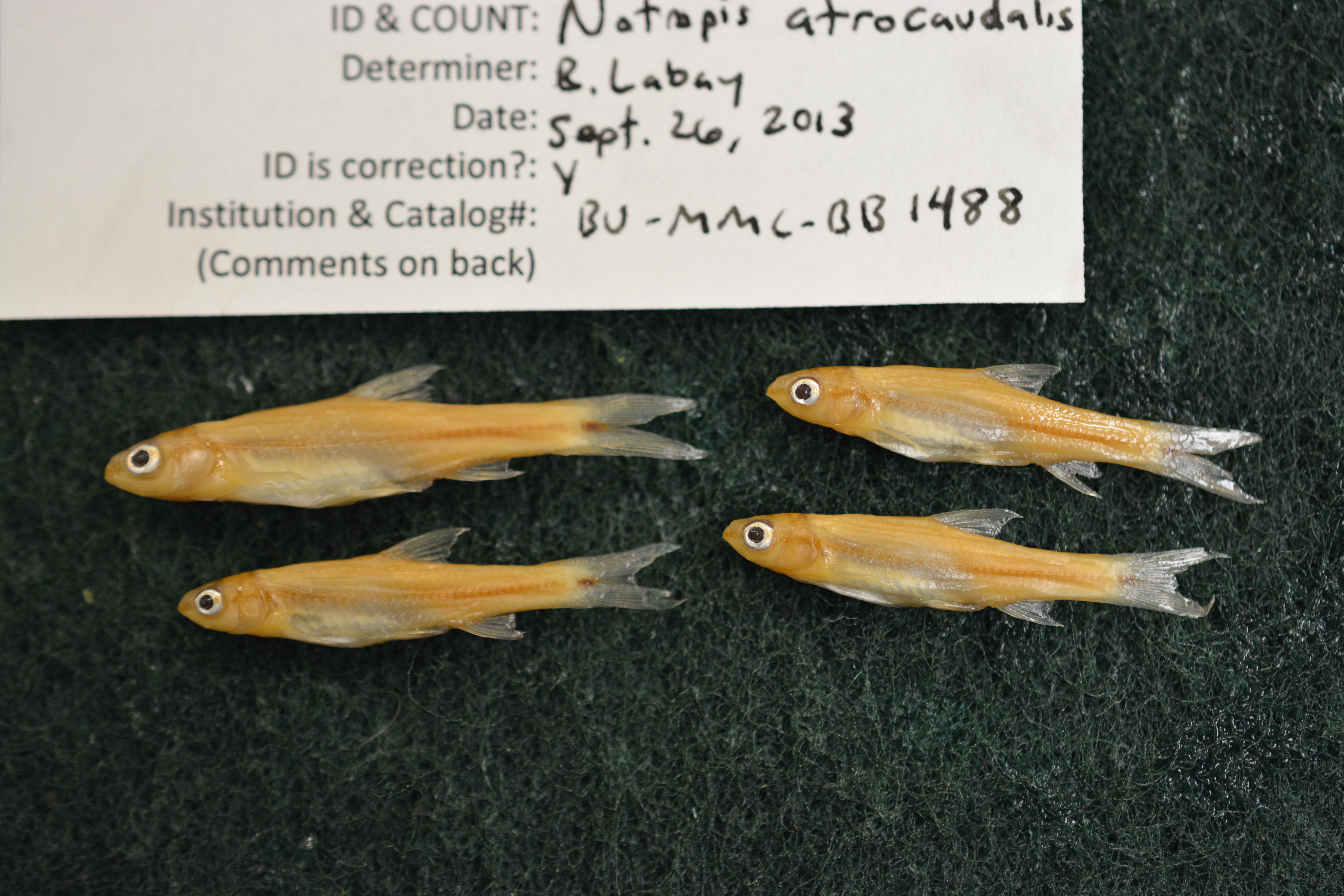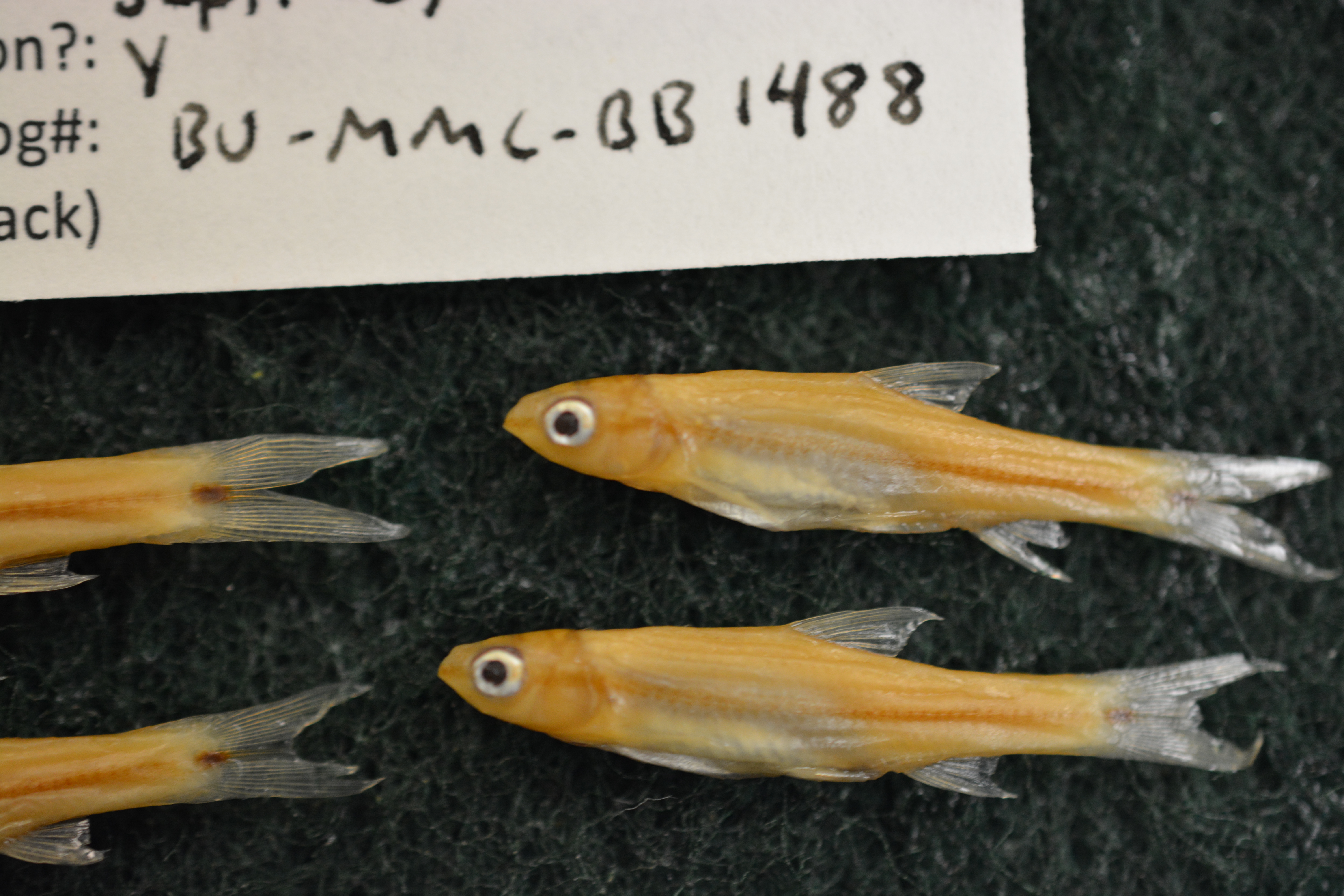 Specimen examined and Id'ed for FoTX project. | all 4 individuals have 7 anal fin rays and caudal spots separate from lateral band