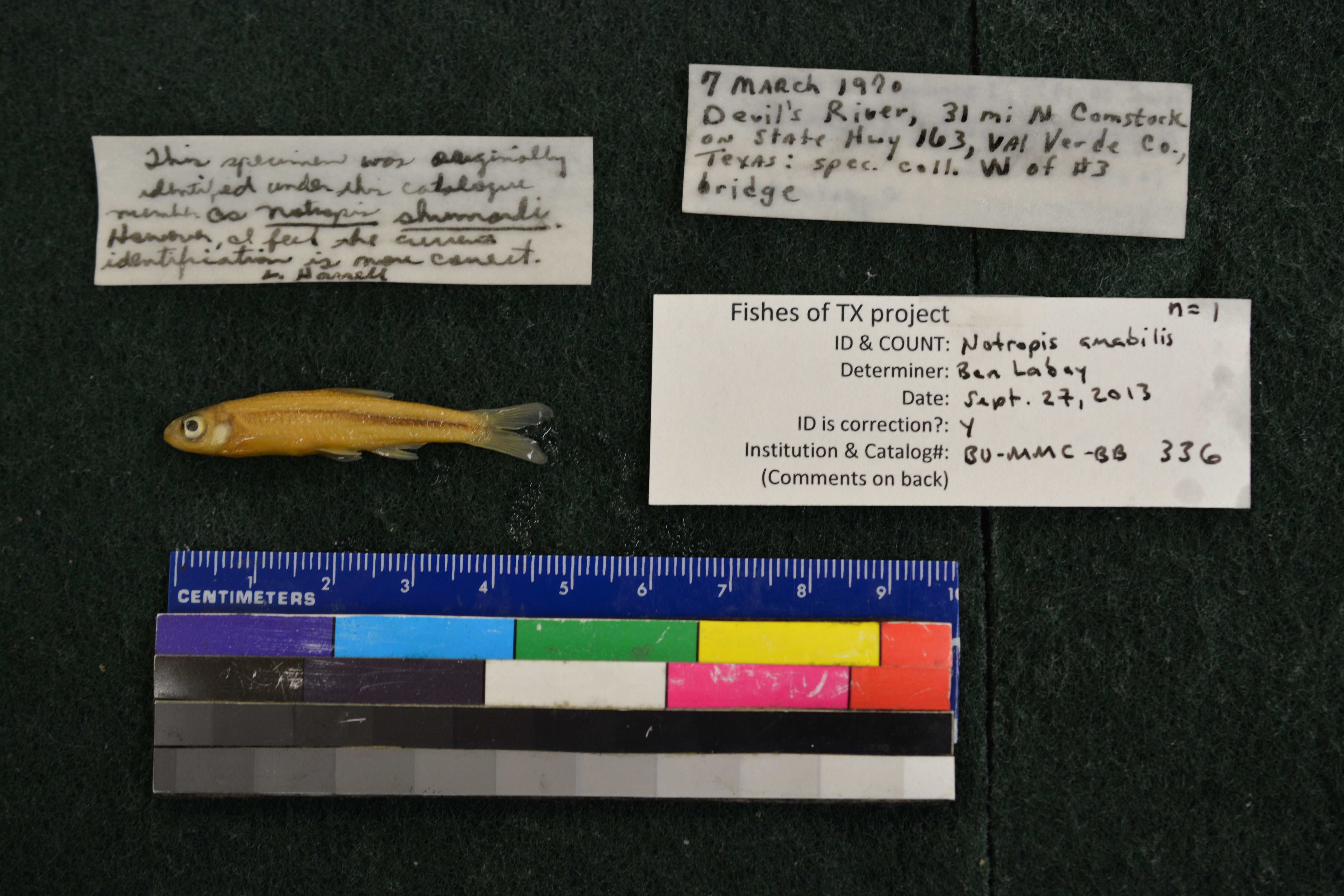LocalityDevil's Run 31 mi N of comstock, Val Verde Co., TX on State Hwy 163, Spec. taken W of #3 bridge - Labeled as Notropis amabilis