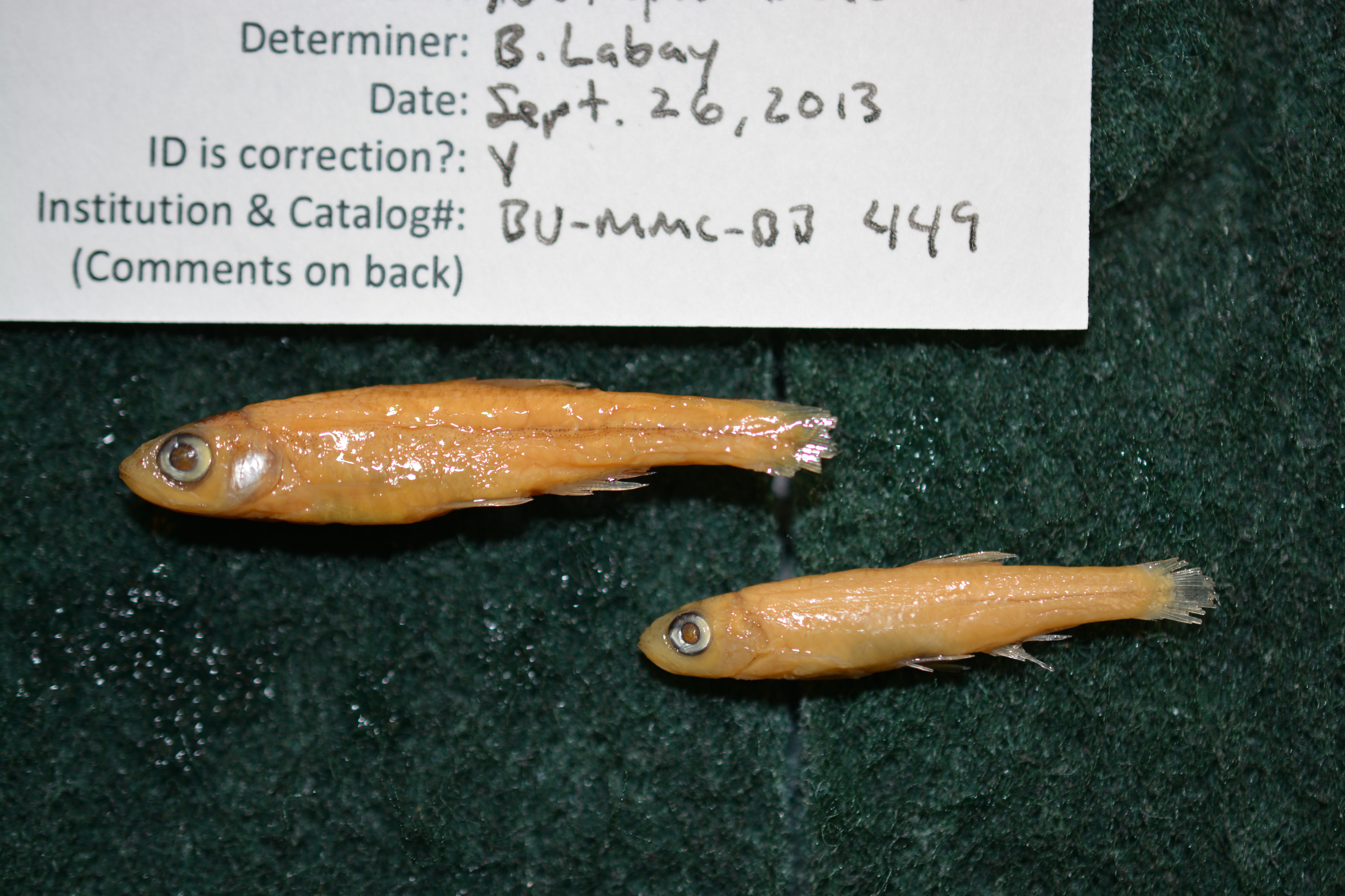 Specimen examined and Id'ed for FoTX project. | dorsal fin origin set back from pelvic fin origin