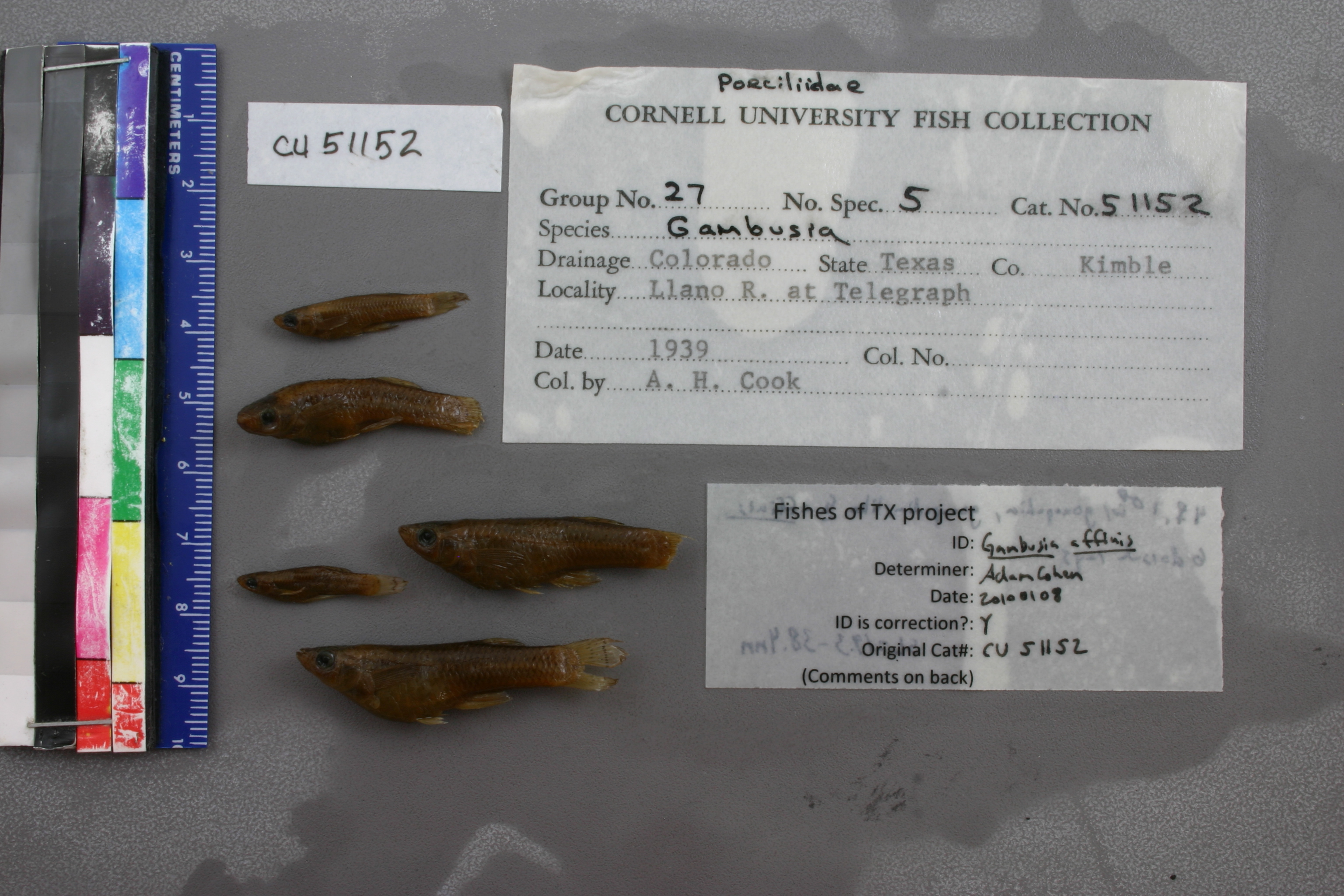 ID Comments: 4 females; 1 male with developed gonopodium; gonopodium like that of G. affinis; 6 dorsal rays