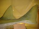 ID complete | Specimen is model with original rostrum; approx 10-12 ft total length; original jaw kept as well and separate in box; rostrum has 24 teeth on left and 26 teeth on right; model and jaws photographed; caudal fin with very slight lobe at bottom