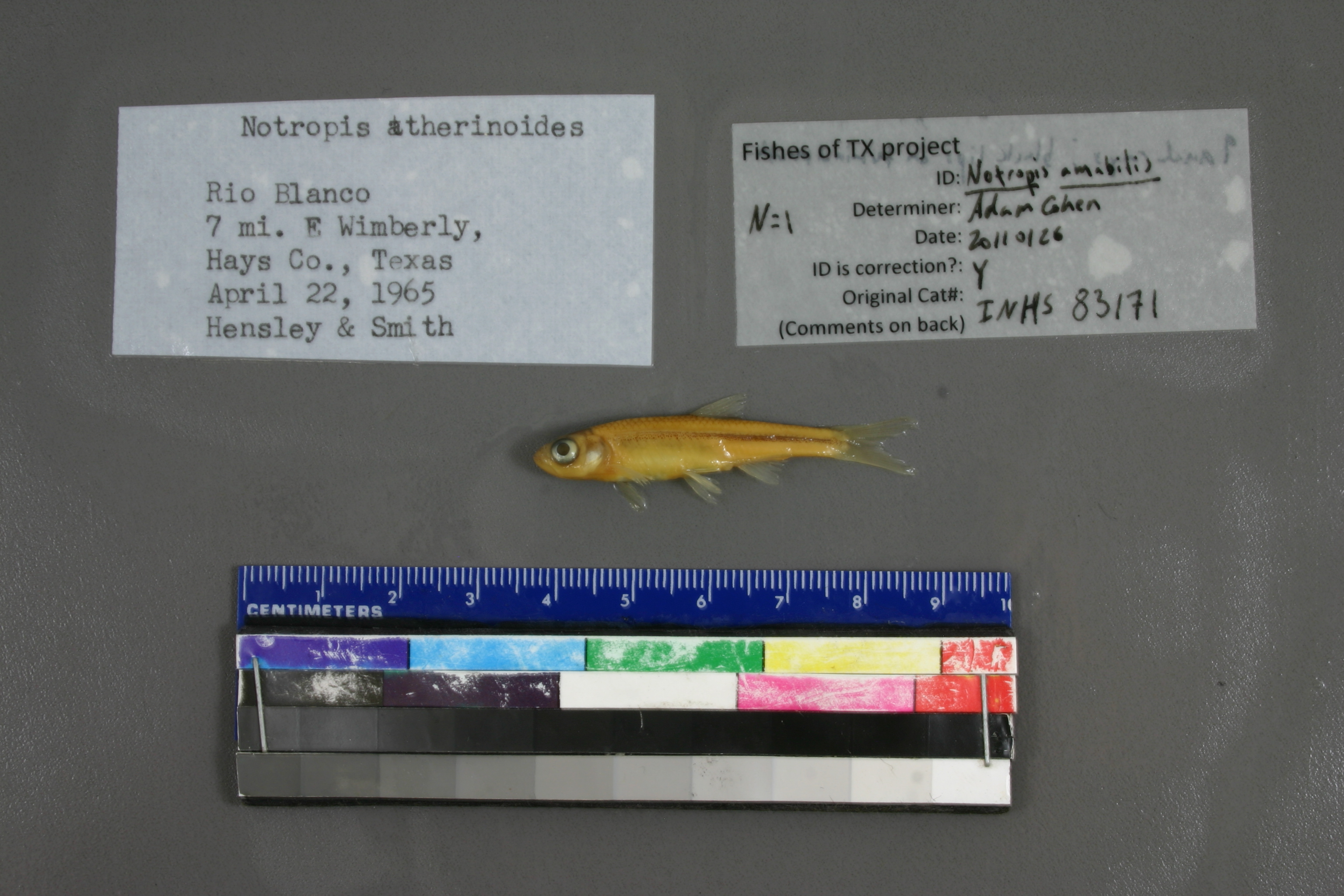 ID Status: Specimen examined and ID'ed for FoTX projectID Comments: 9 anal rays; black lips on terminal mouthGeoref Remark: Measured by stream