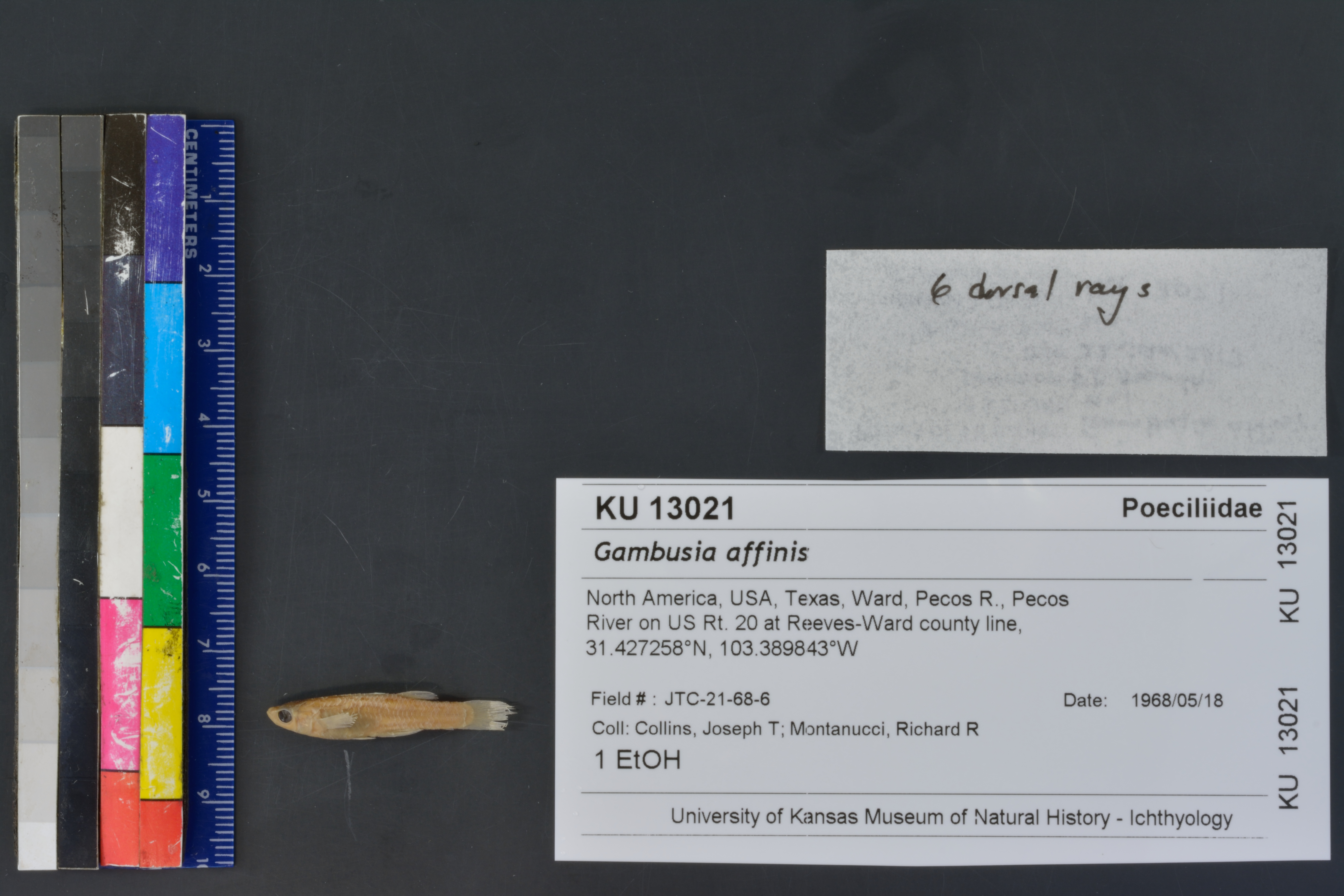 Specimen examined and Id'ed for FoTX project. | 6 dorsal rays