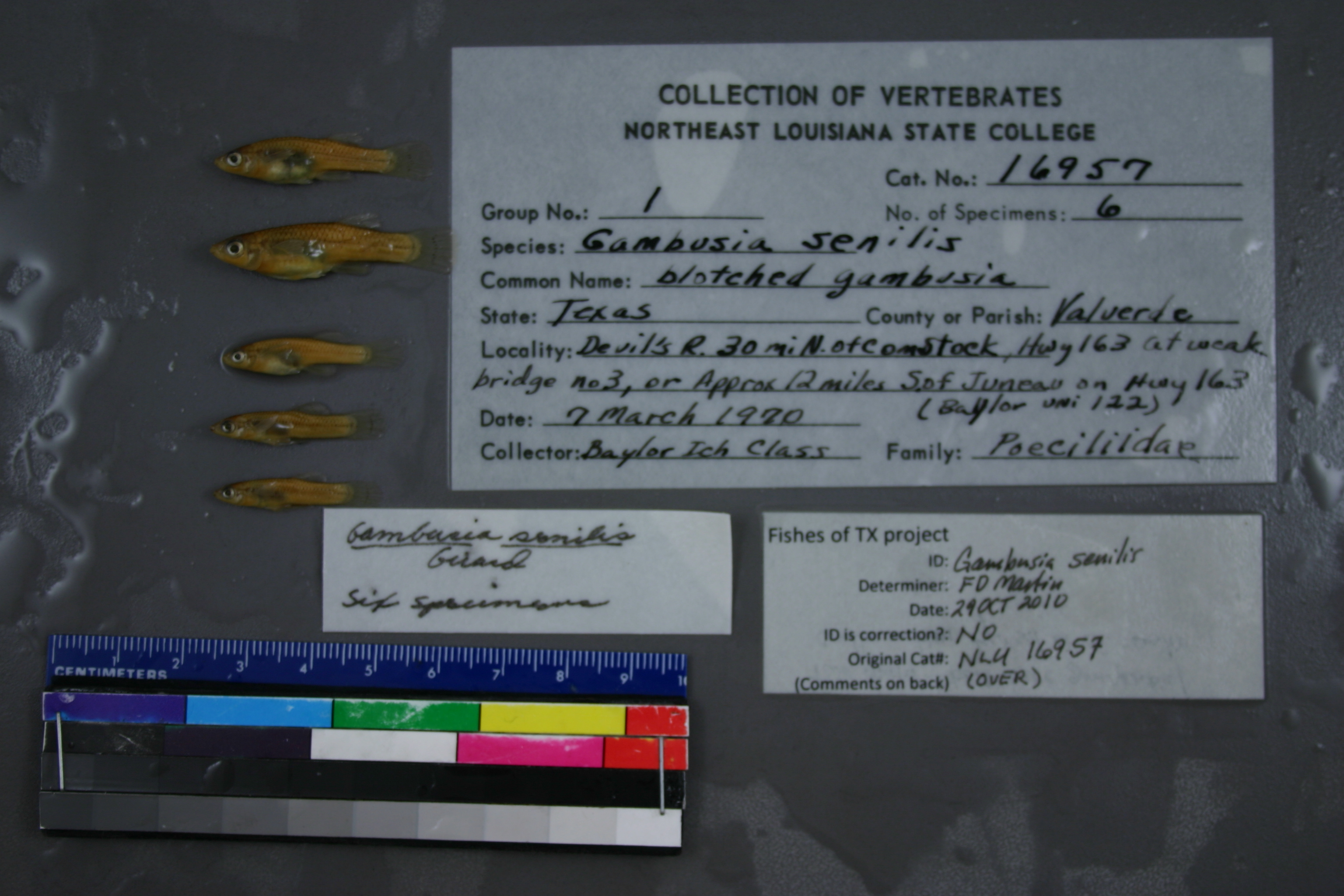 ID Status: Specimen examined and ID'ed for FoTX projectID Comments: two males - both have gonopodial configurations typical of G. senilisID Confidence: high