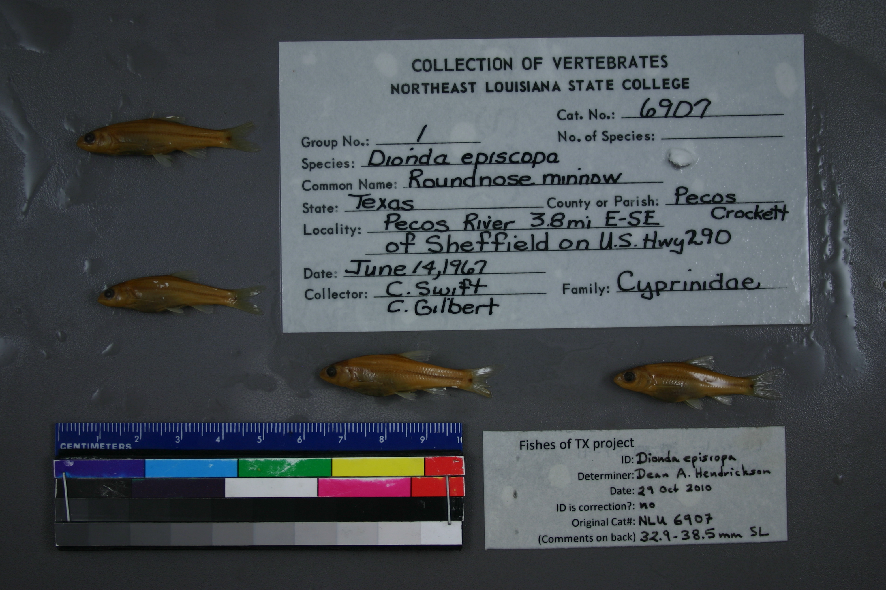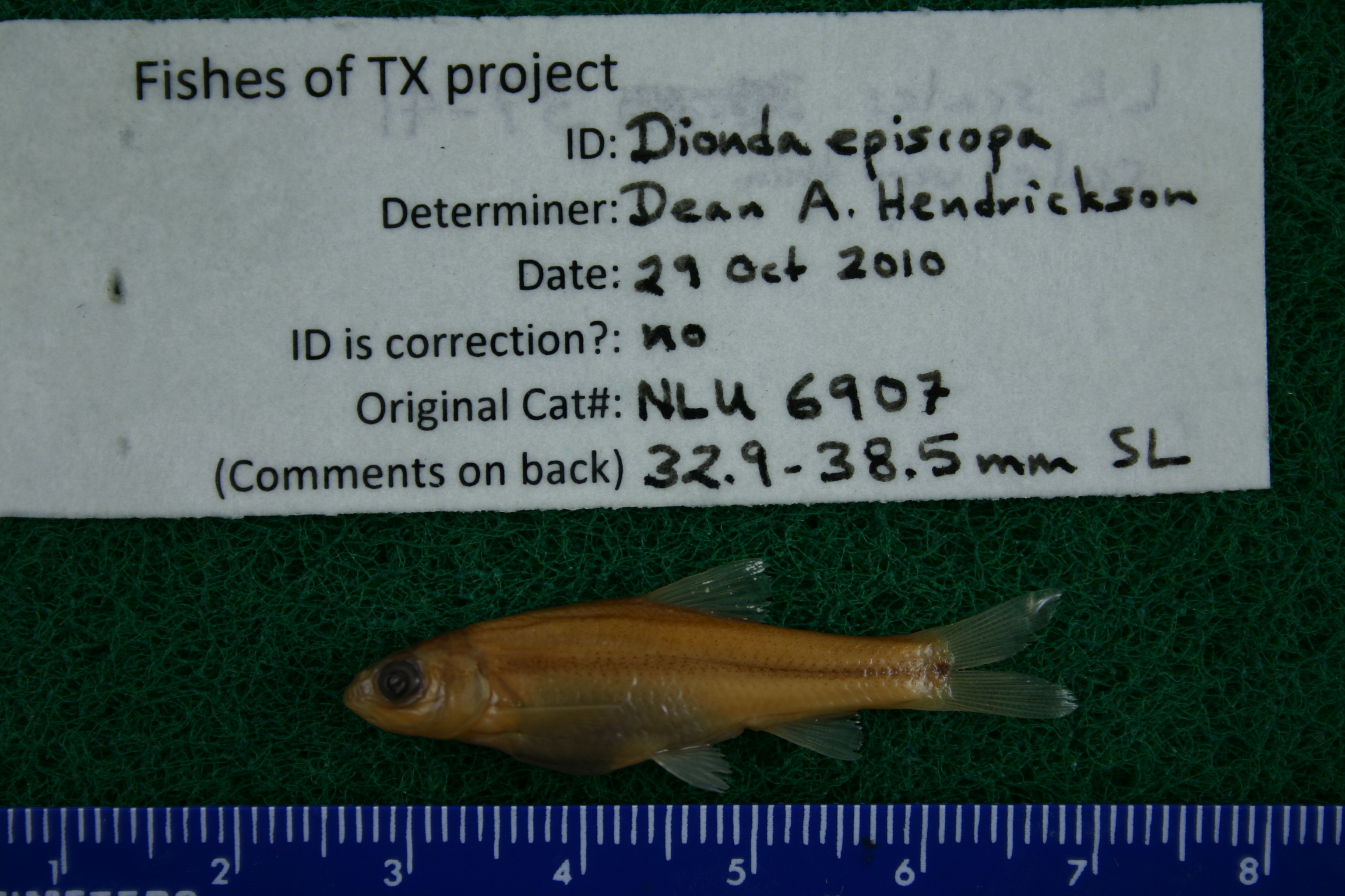 ID Status: Specimen examined and ID'ed for FoTX projectID Comments: 32.9-38.5 mm SL; LL scales 37-41; scales fvery thinID Confidence: high
