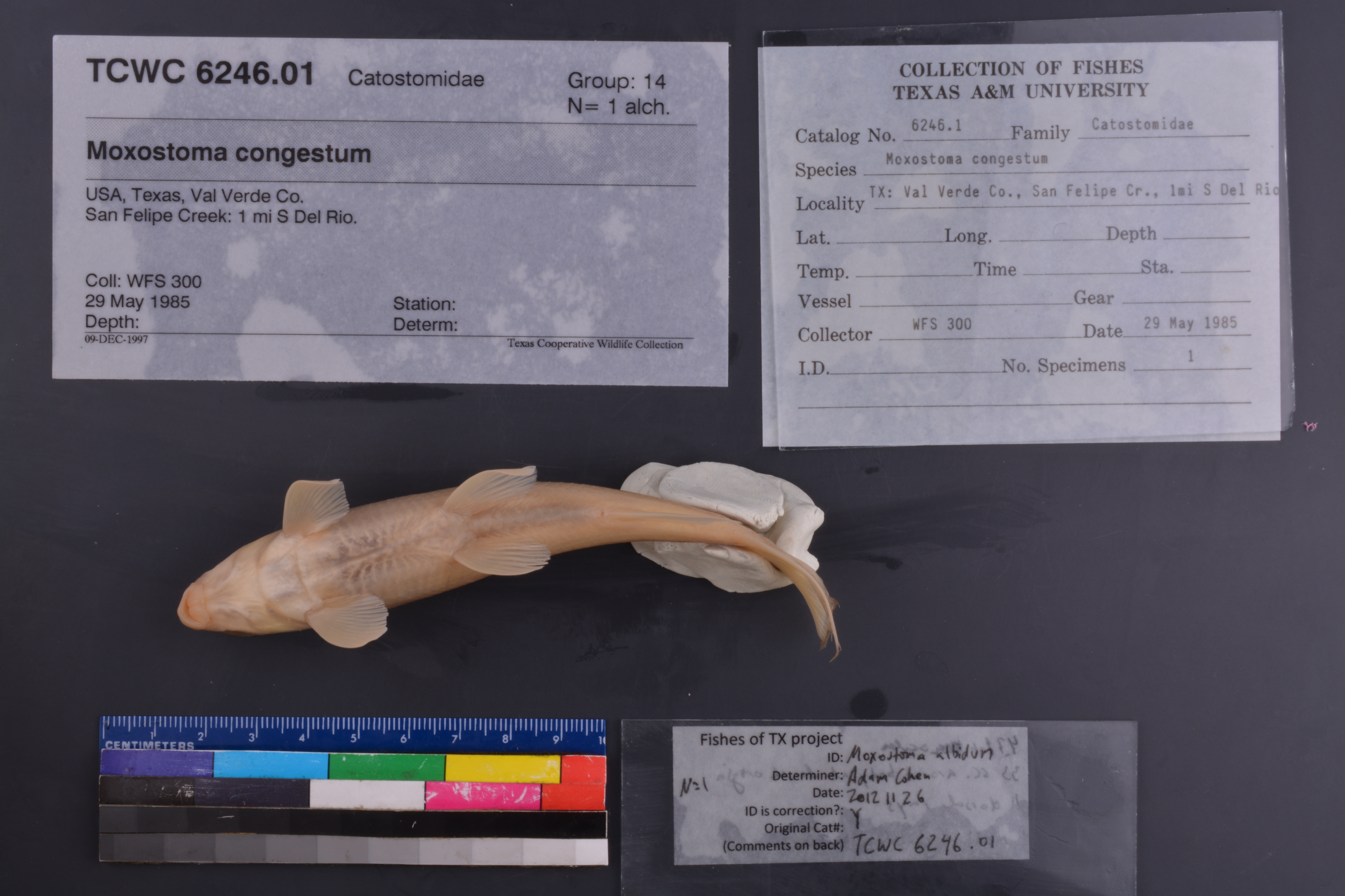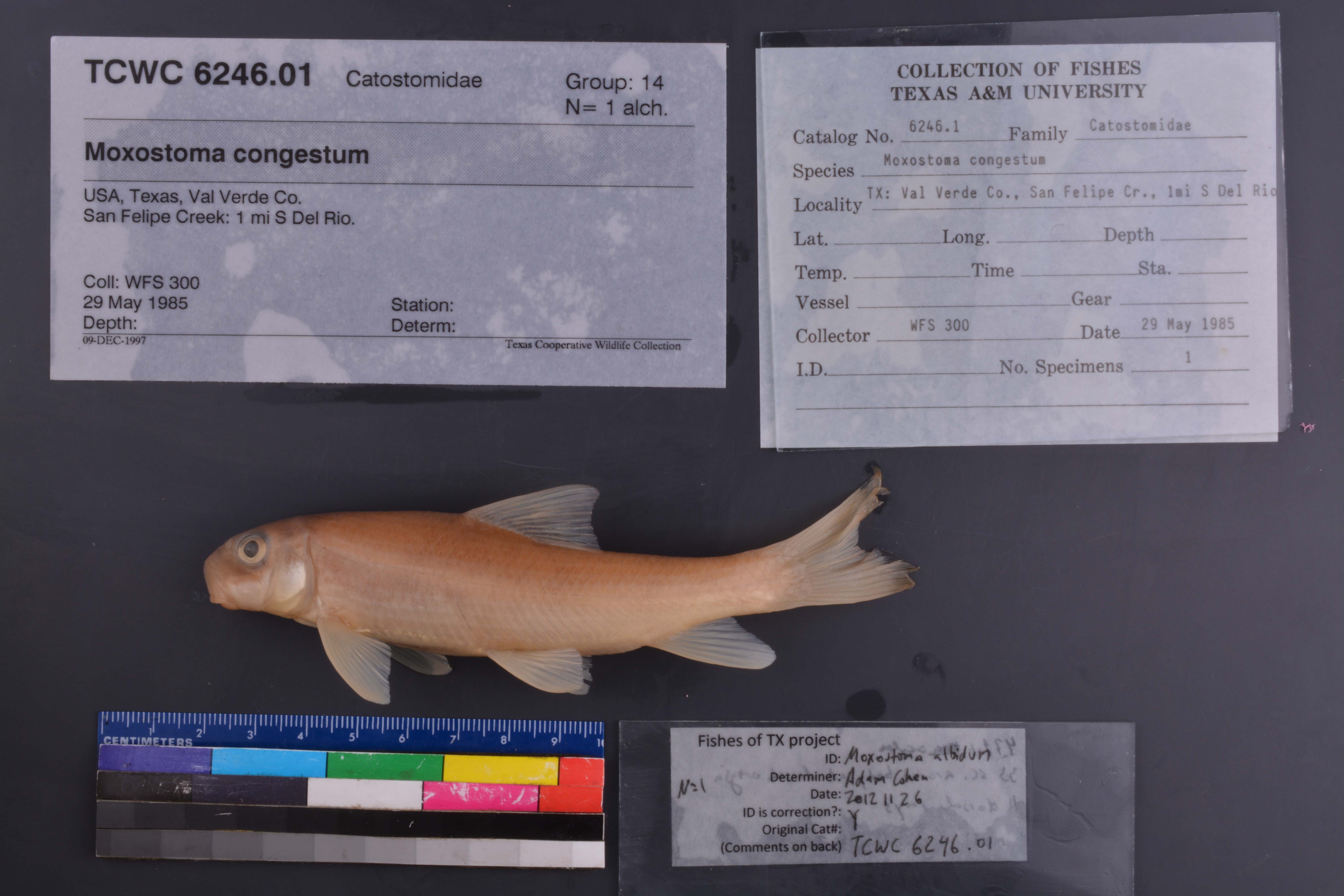 Specimen examined and Id'ed for FoTX project. | 47 lat scales; 33 scales around body at dorsal origin; 11 dorsal rays