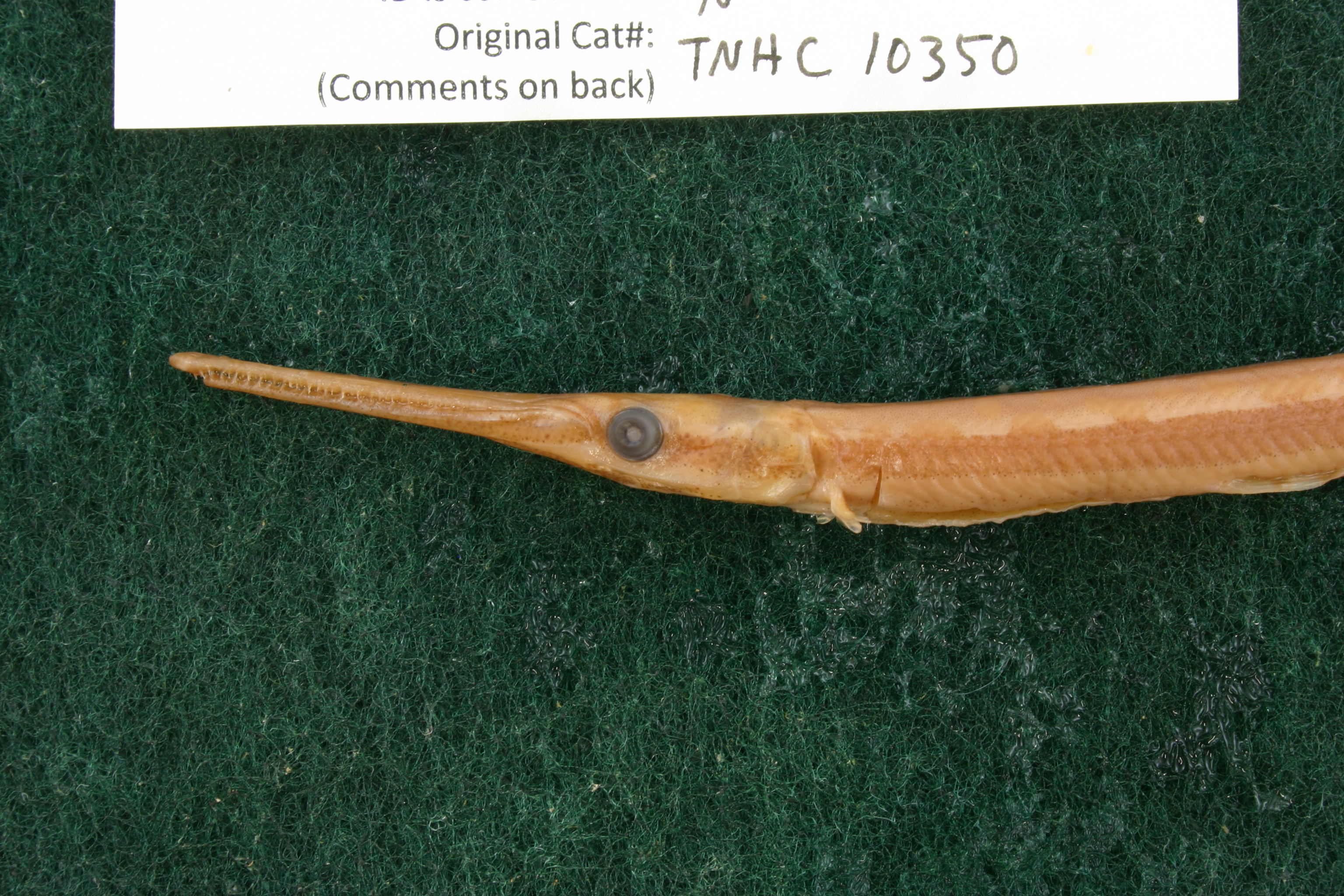 Specimen examined and Id'ed for FoTX project. | ID notes: lateral line scales: 57; *note for SL measurements that gar have heterocercal tails - all length measurements are based on SL and are approximate; MinSL(mm): 115.49; MaxSL(mm): ; Jar: 8 oz; Specimen condition: good; Mutations: none; Count Male: ; Count female: ; Extern parasites: n