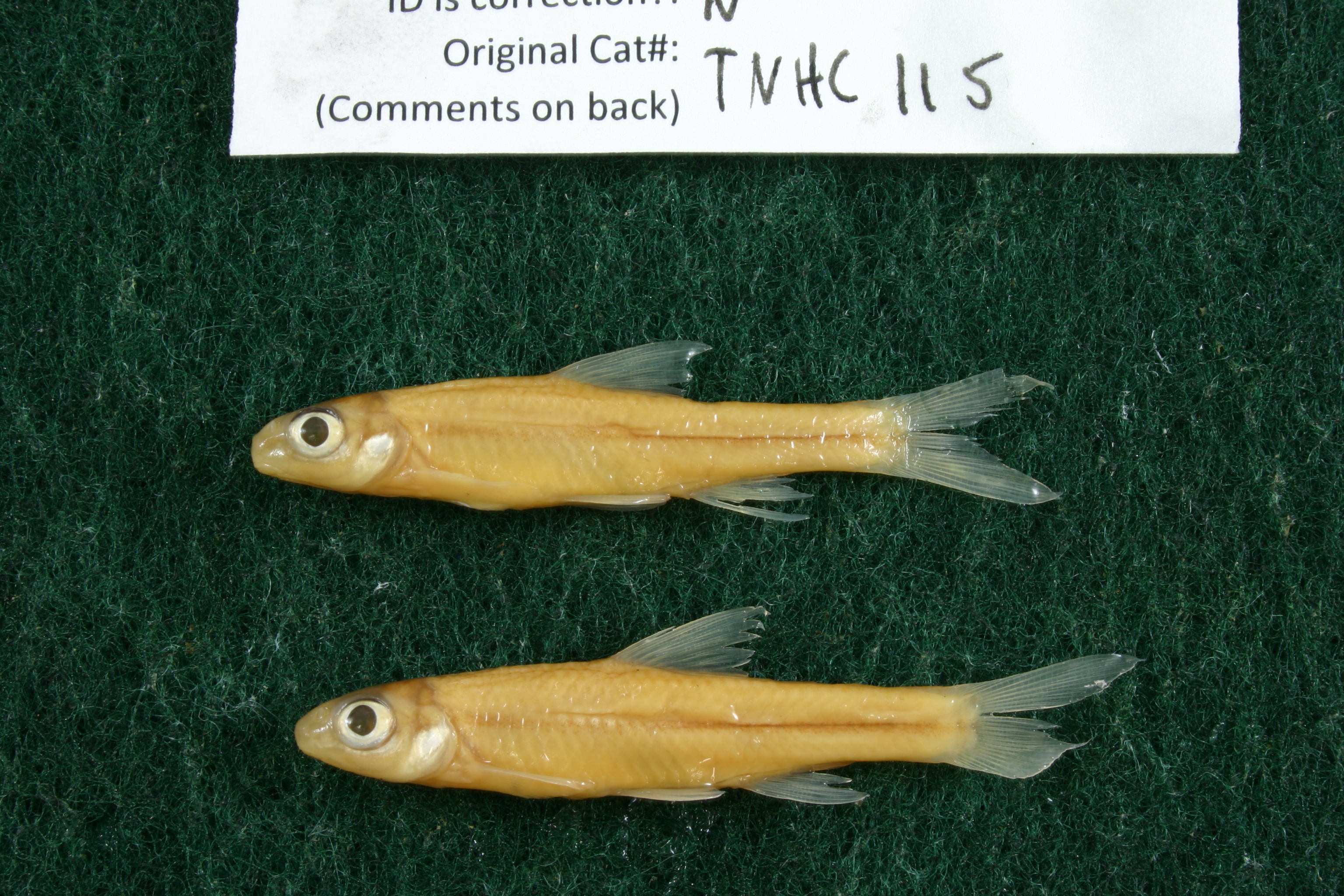 Specimen examined and Id'ed for FoTX project. | ID notes: ; MinSL(mm): 38.29; MaxSL(mm): 47.4; Jar: 8 oz; Specimen condition: good; Mutations: none; Count Male: ; Count female: ; Extern parasites: n