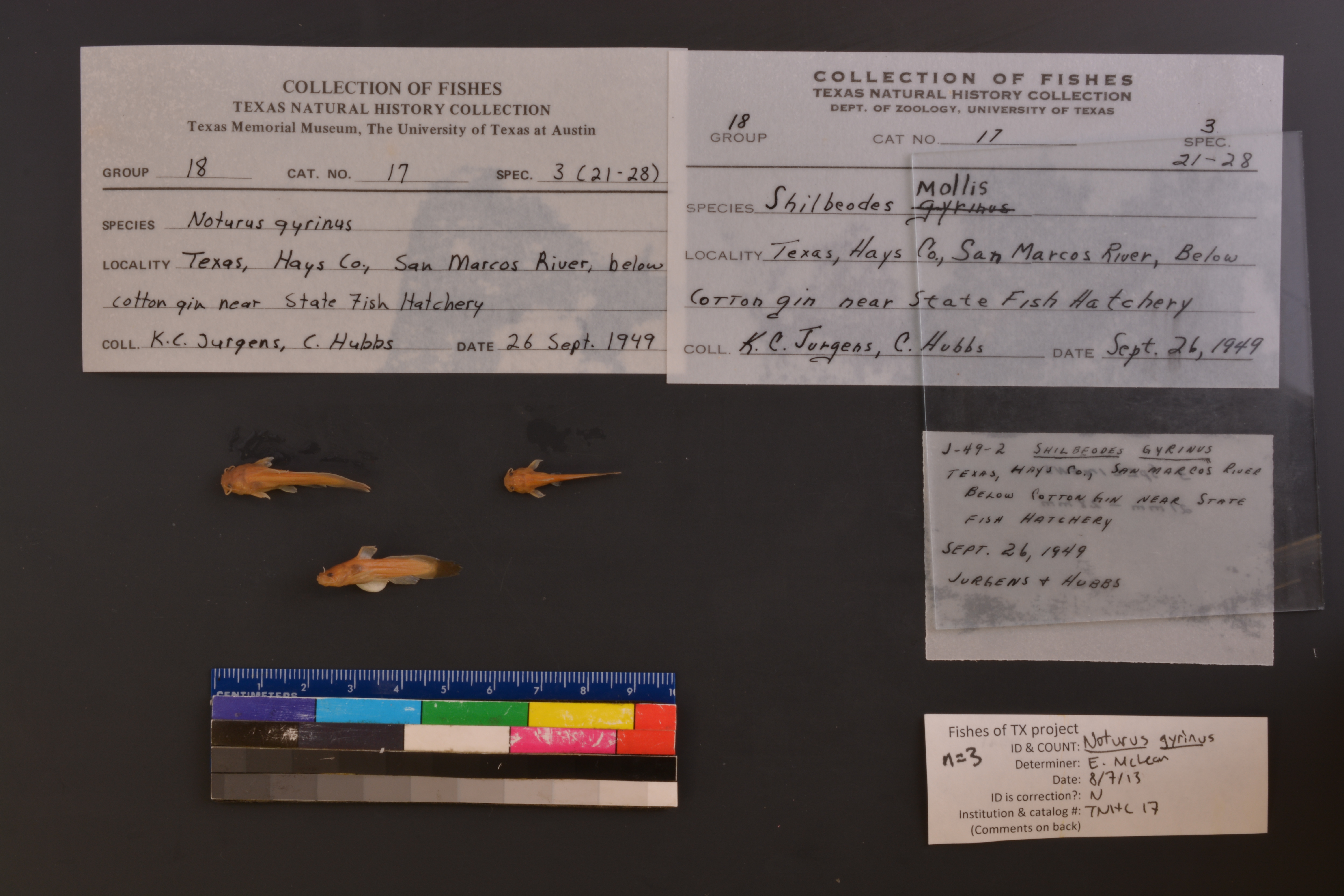 Specimen examined and Id'ed for FoTX project. | ID notes: even mouth, rounded caudal; MinSL(mm): 18.07; MaxSL(mm): 24; Jar: 8 oz; Specimen condition: good; Mutations: none; Count Male: ; Count female: ; Extern parasites: n