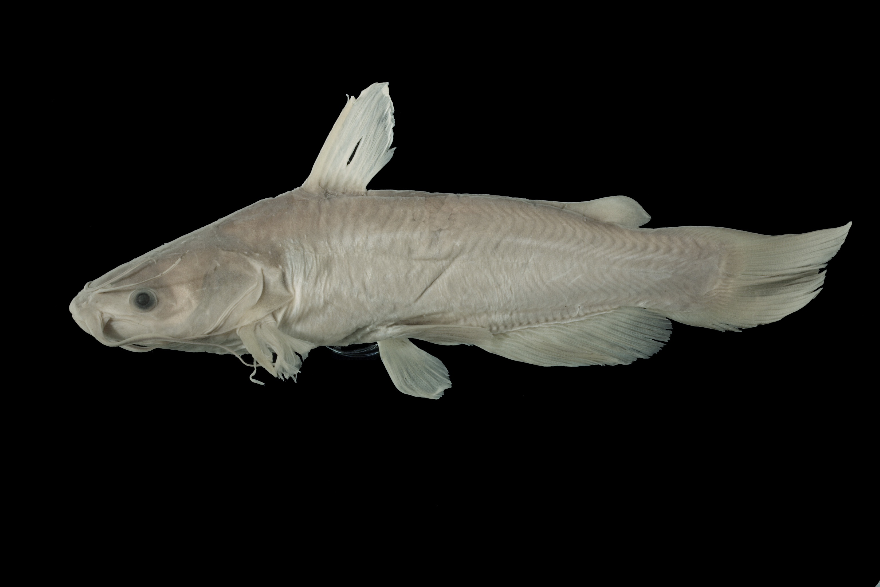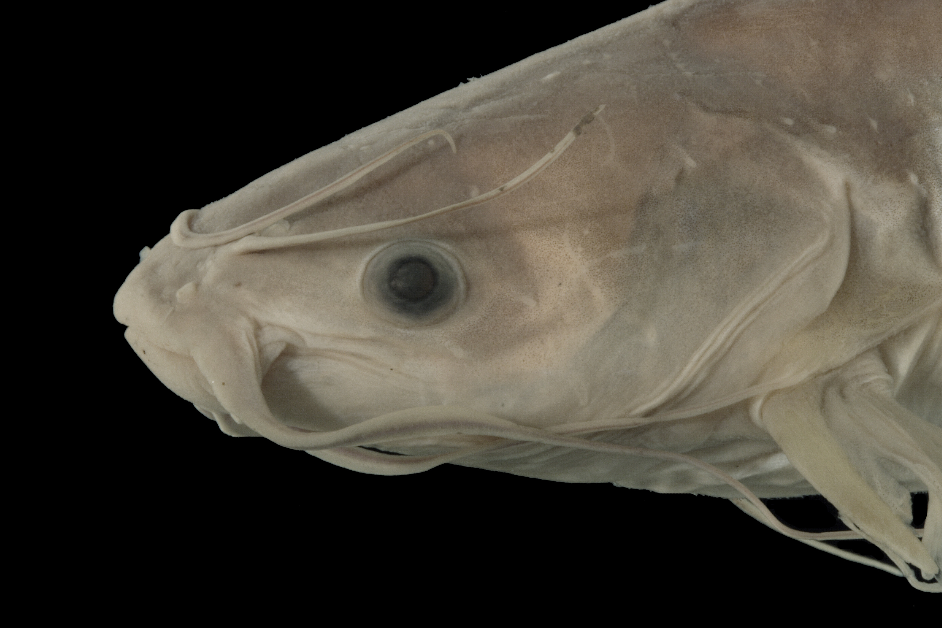 suspect flag — We have moderate confidence in the ID as A. catus despite large and well-preserved specimens. Second opinions would be in order, but we feel confident this is not A. natalis or A. melas. Record needs more research. Possibility of labeling or database error cannot be ruled out. No original labels in jar except the original ID label by Humphries and Cashner who determine this to be 'Ictalurus catus' on Mar 9, 1982.