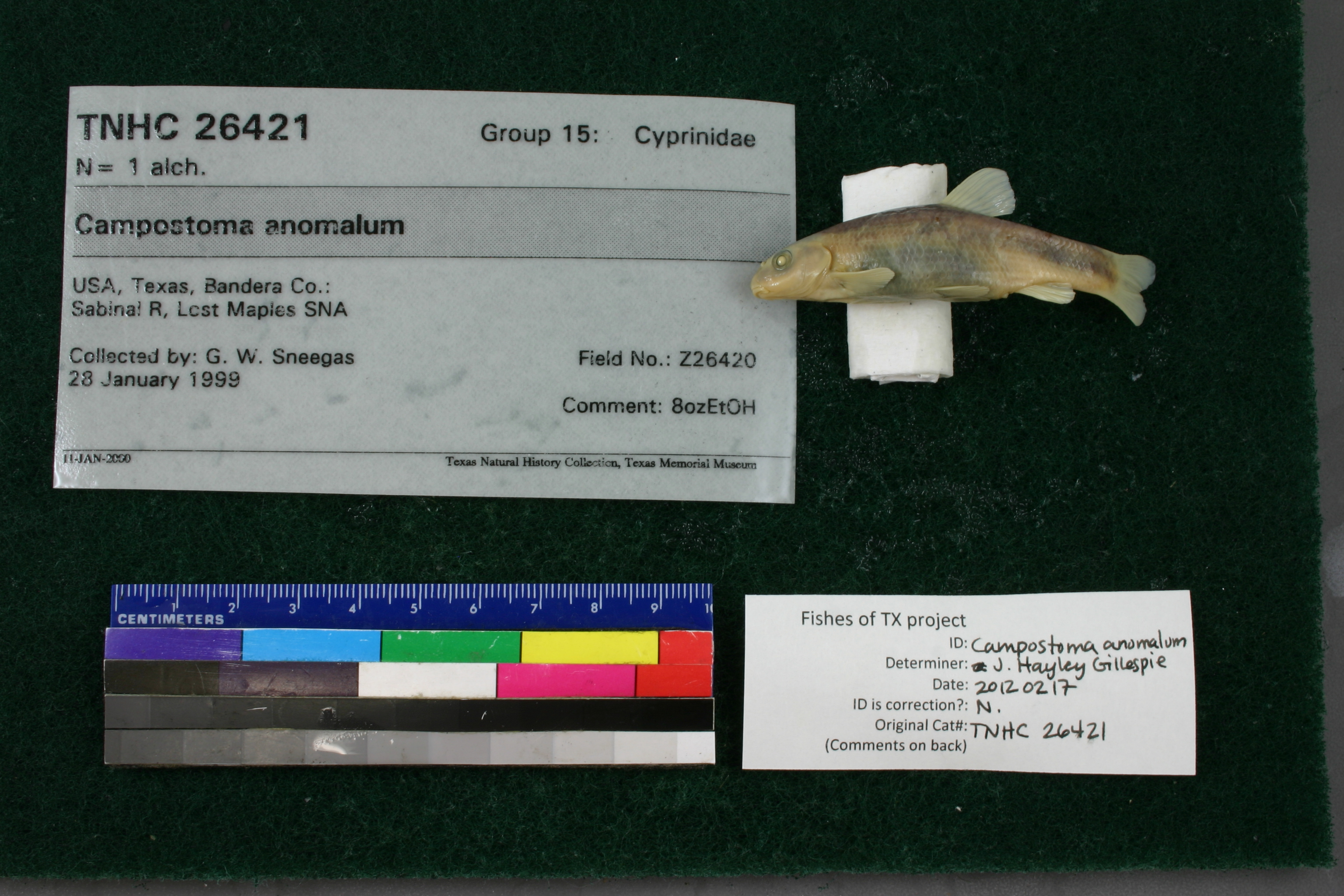 Specimen examined and Id'ed for FoTX project. | ID notes: cartilaginous ridge on lower jaw present, rounded; MinSL(mm): 62.67; MaxSL(mm): ; Jar: 8 oz; Specimen condition: good; Mutations: none; Count Male: ; Count female: ; Extern parasites: n