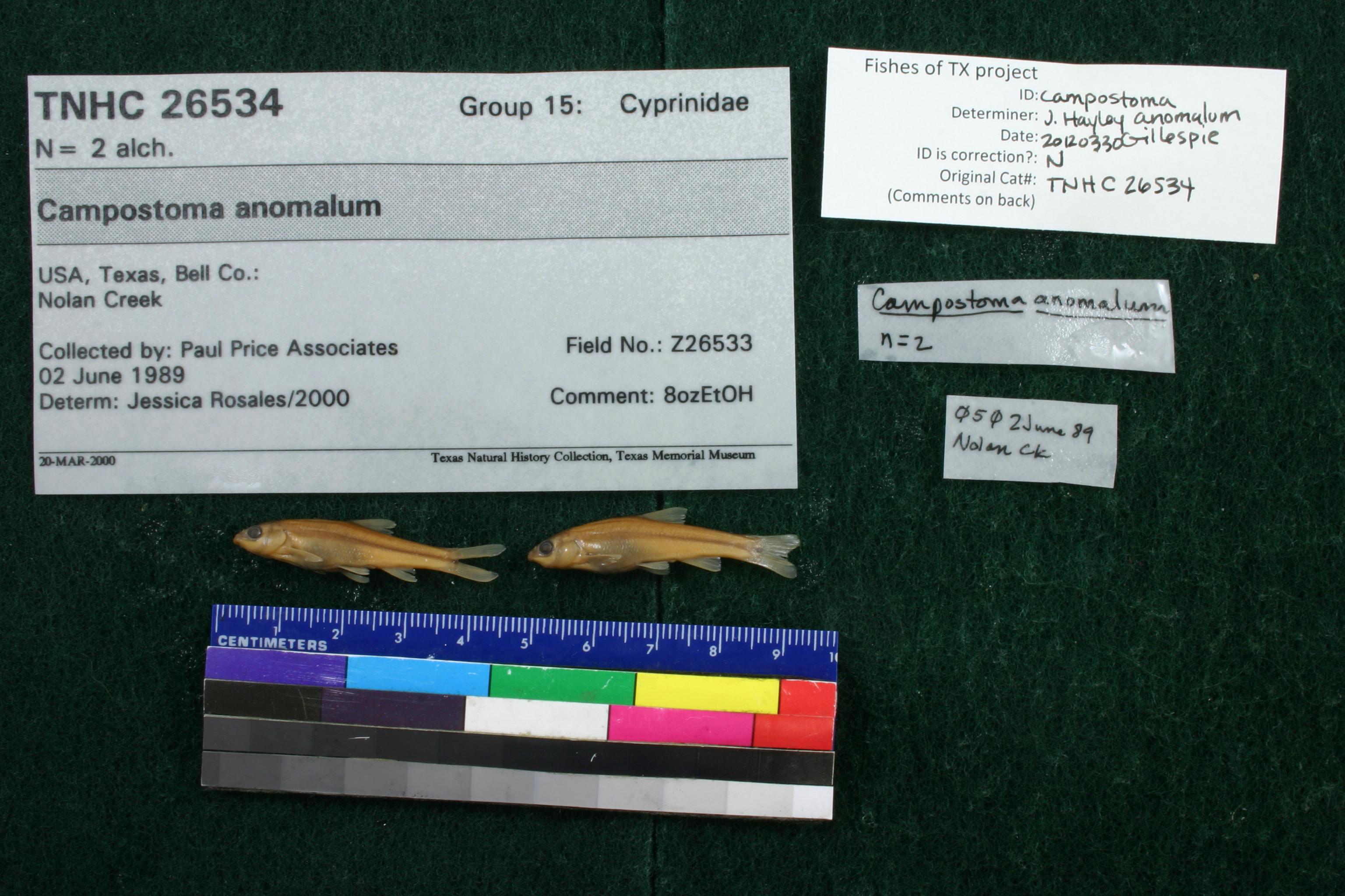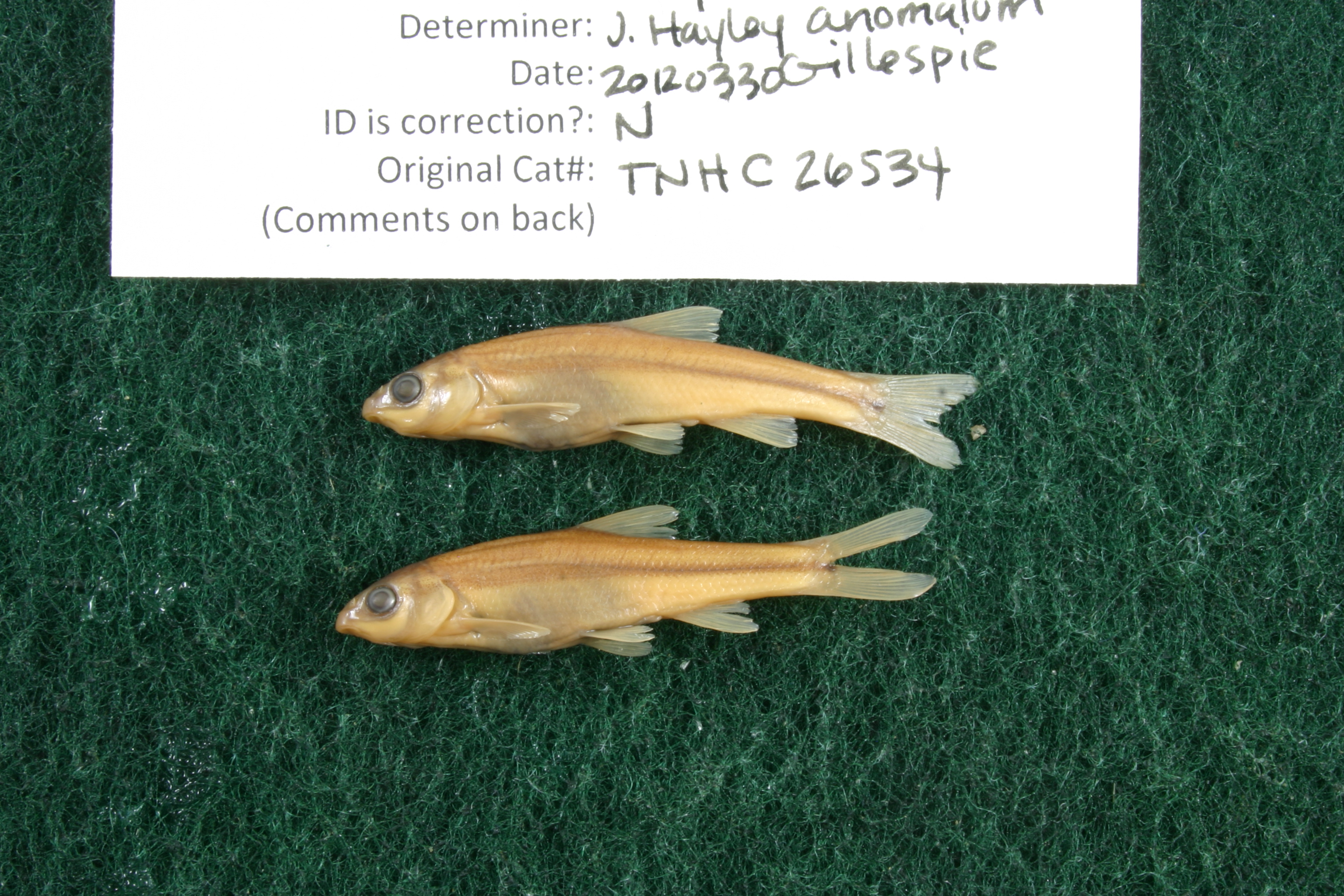 Specimen examined and Id'ed for FoTX project. | ID notes: cartilaginous ridge on lower jaw present, rounded, but relatively thin; MinSL(mm): 33.88; MaxSL(mm): 36.57; Jar: 8 oz; Specimen condition: good; Mutations: none; Count Male: ; Count female: ; Extern parasites: n