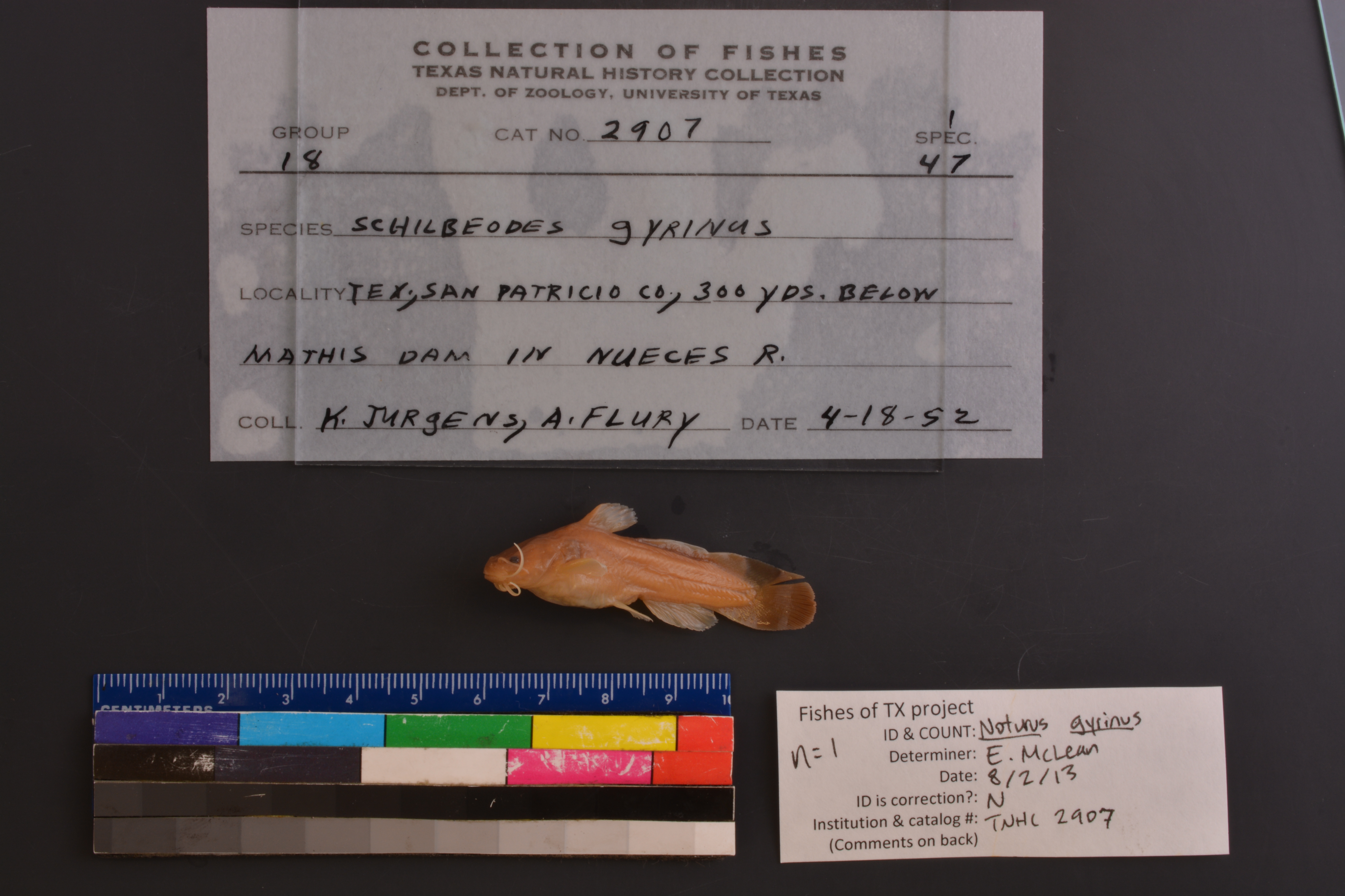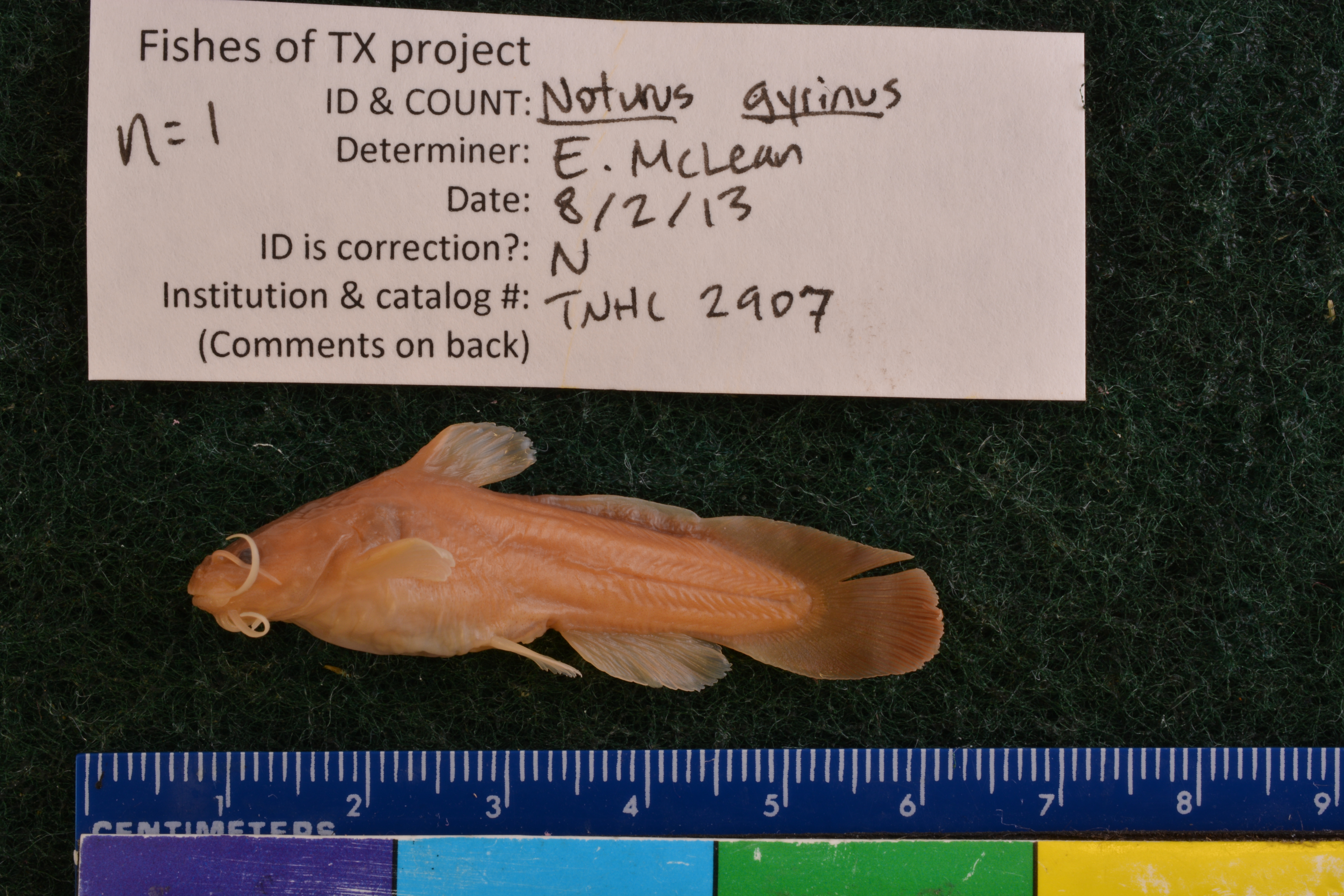 Specimen examined and Id'ed for FoTX project. | ID notes: even mouth, tapered caudal; MinSL(mm): 43.6; MaxSL(mm): ; Jar: 8 oz; Specimen condition: good; Mutations: none; Count Male: ; Count female: ; Extern parasites: n