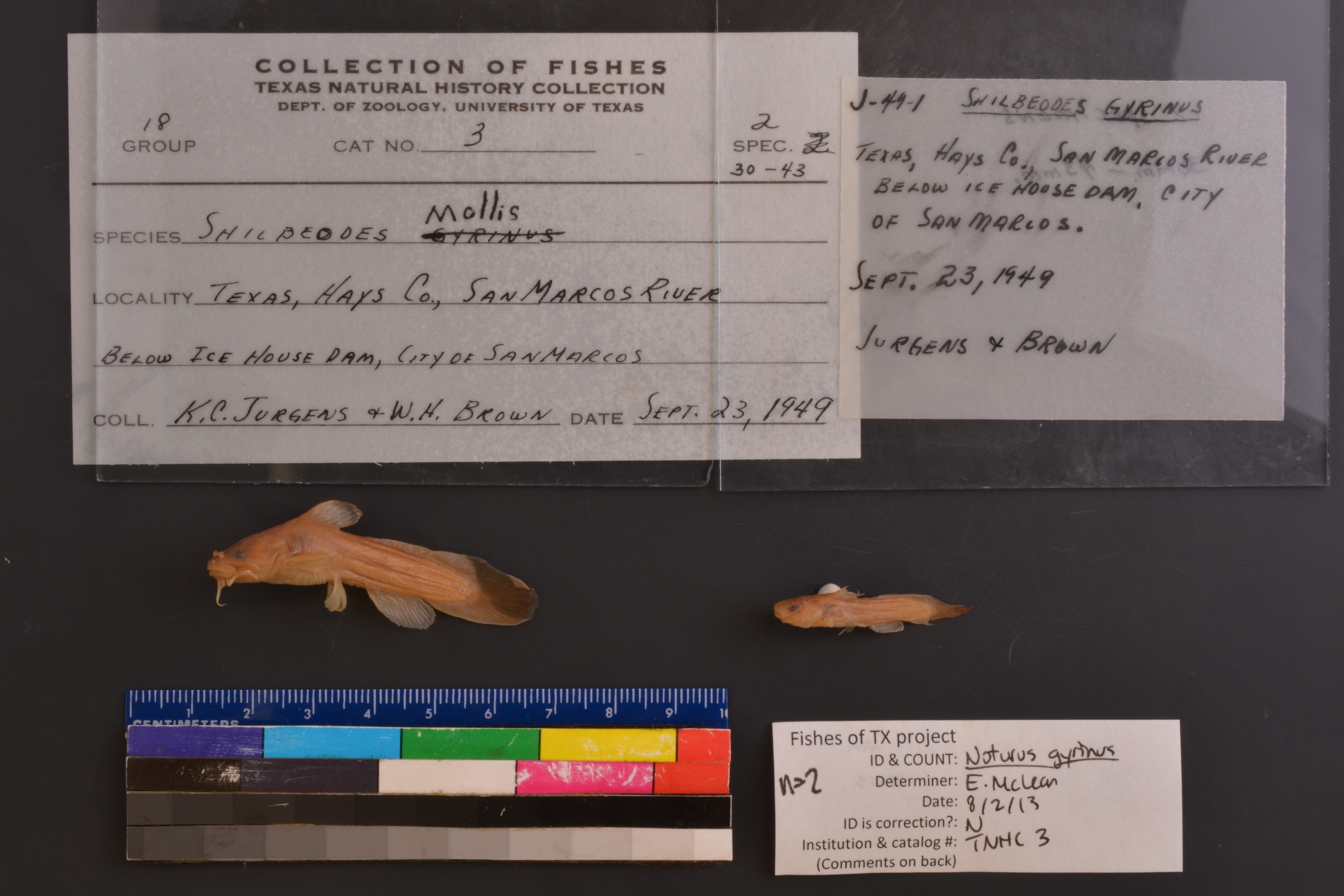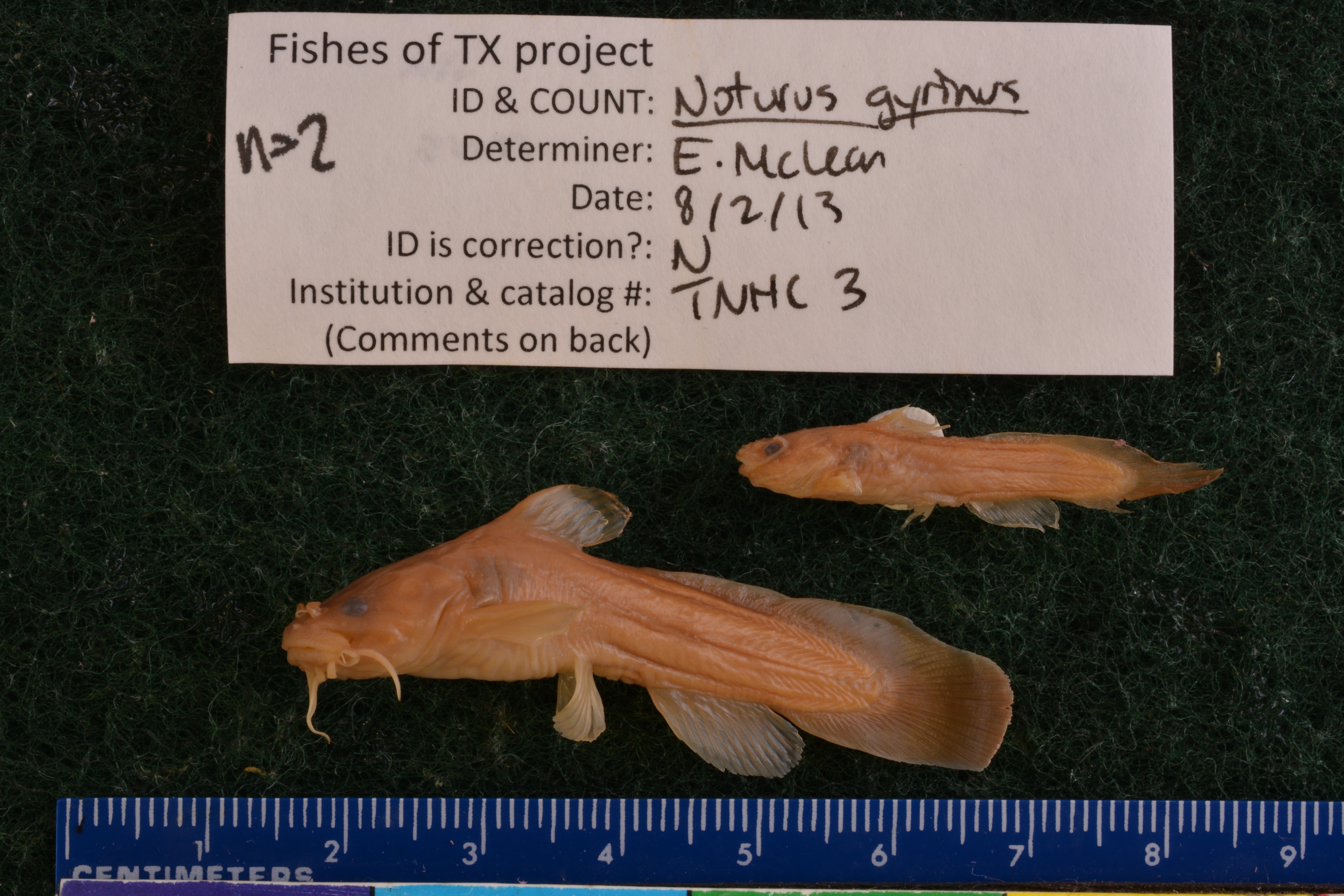 Specimen examined and Id'ed for FoTX project. | ID notes: even mouth, tapered caudal; MinSL(mm): 26.31; MaxSL(mm): 42.89; Jar: 8 oz; Specimen condition: medium; Mutations: none; Count Male: ; Count female: ; Extern parasites: n
