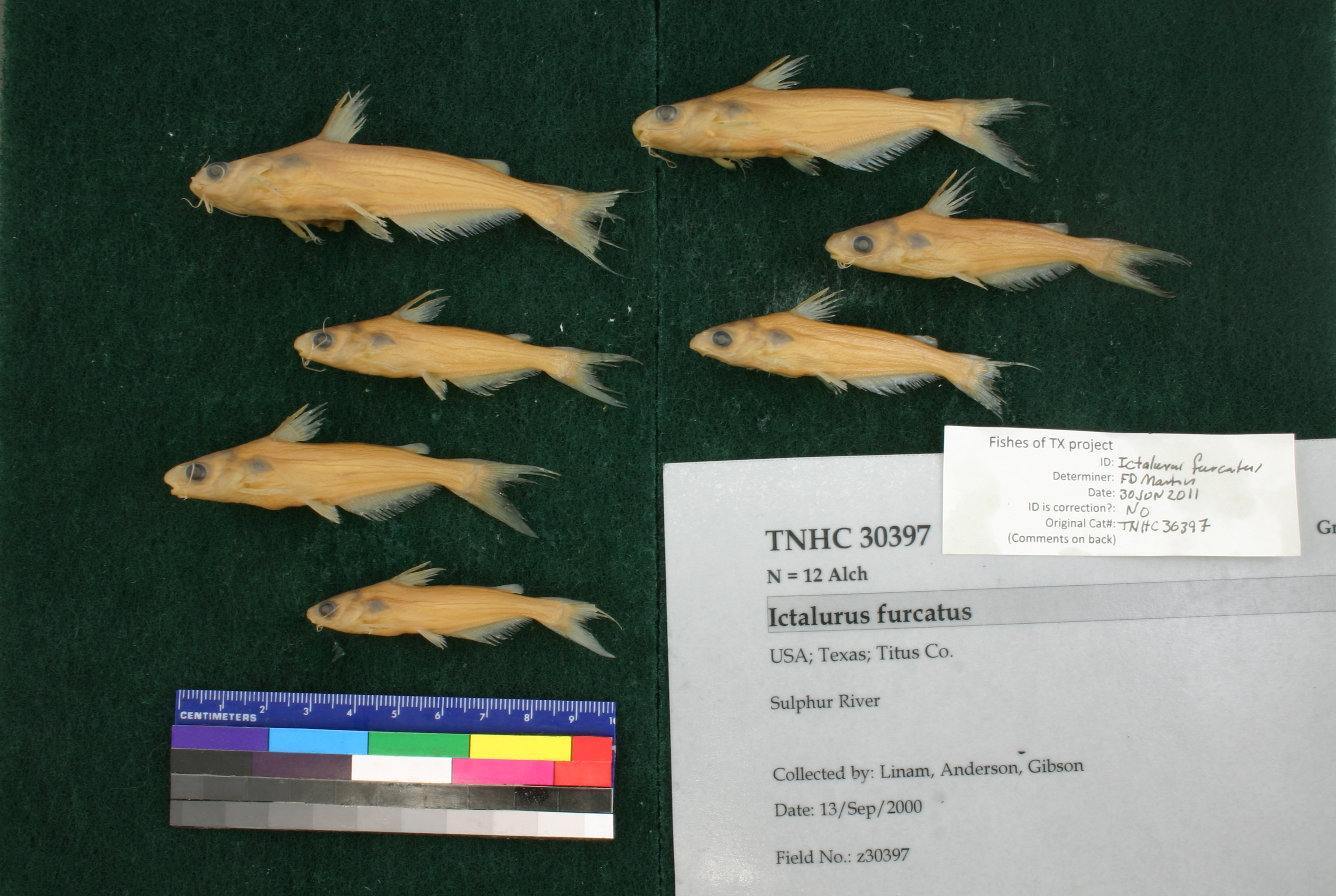 Specimen examined and Id'ed for FoTX project. | ID notes: it appears that most of collection is on loan; MinSL(mm): 55.86; MaxSL(mm): 82.61; Jar: 1 gallon; Specimen condition: good; Mutations: none; Count Male: ; Count female: ; Extern parasites: n