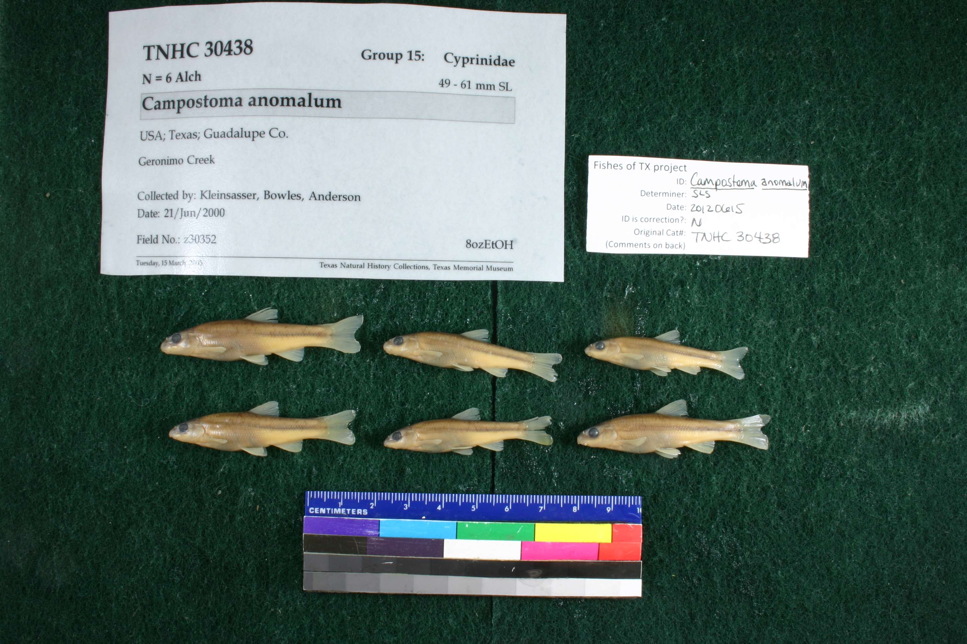 Specimen examined and Id'ed for FoTX project. | ID notes: flat, forward-projecting ridge on lower jaw; MinSL(mm): 40.58; MaxSL(mm): 50.54; Jar: 8 oz; Specimen condition: good; Mutations: none; Count Male: ; Count female: ; Extern parasites: n