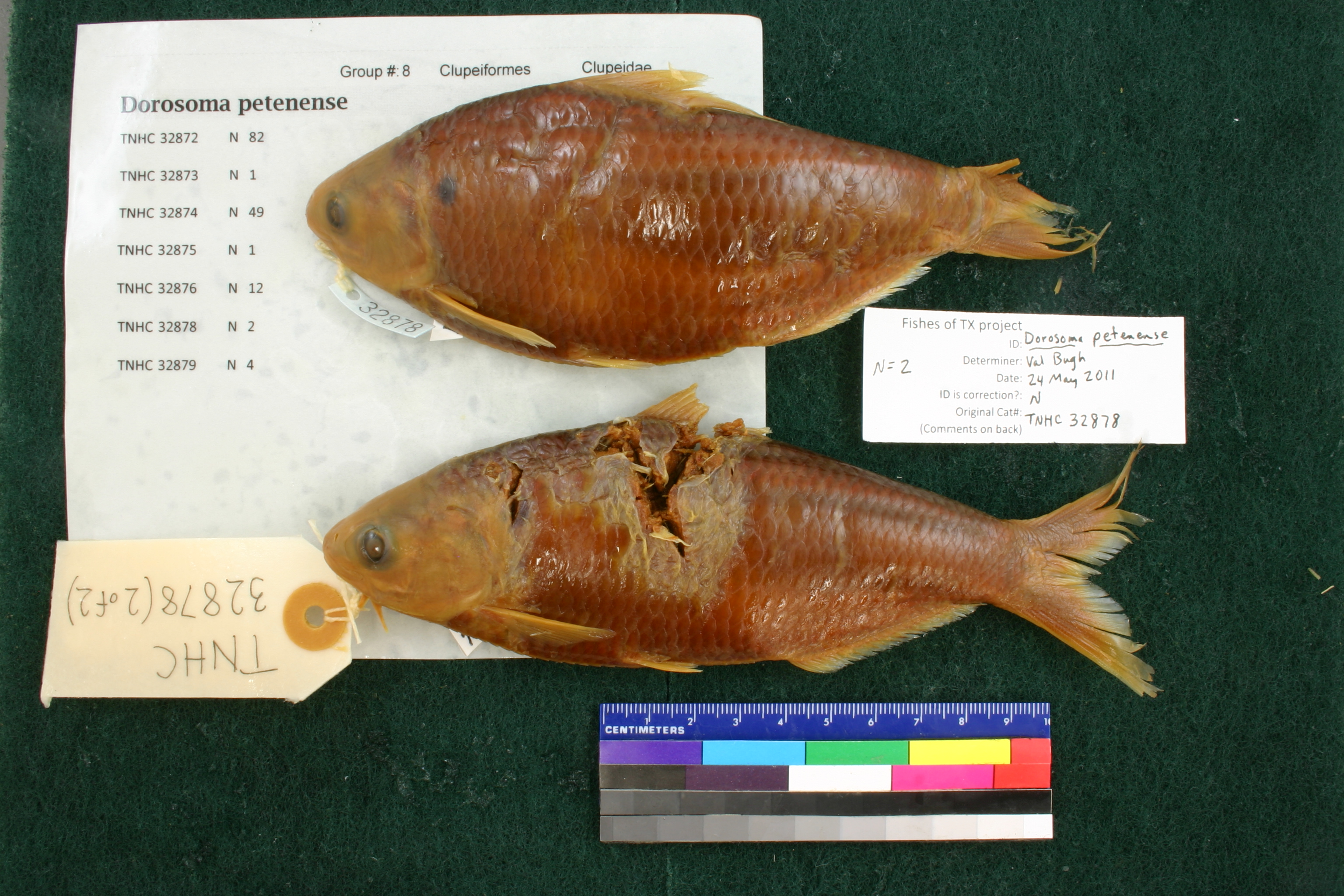 Specimen examined and Id'ed for FoTX project. | ID notes: anal rays: 19,20; MinSL(mm): 147.38; MaxSL(mm): 147.68; Jar: 1 gallon; Specimen condition: poor; Mutations: none; Count Male: ; Count female: ; Extern parasites: n