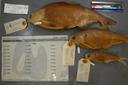 Specimen examined and Id'ed for FoTX project. | ID notes: anal rays: 32; MinSL(mm): 98.33; MaxSL(mm): 234.5; Jar: gallon; Specimen condition: good; Mutations: none; Count Male: ; Count female: ; Extern parasites: