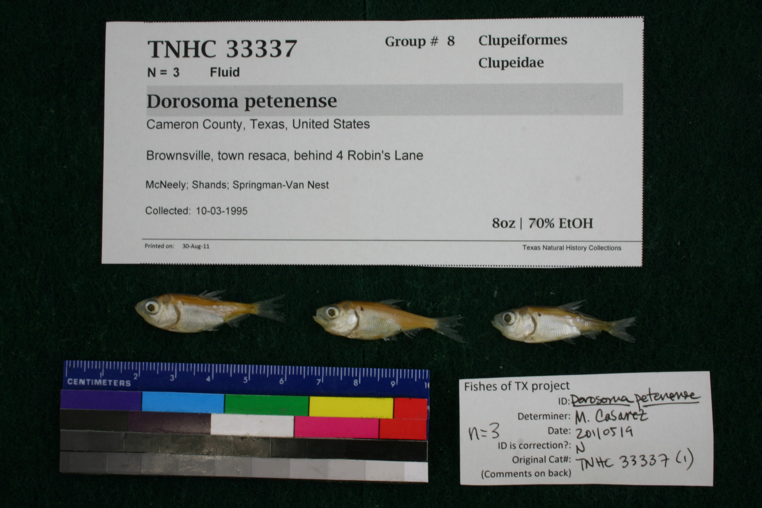 Specimen examined and Id'ed for FoTX project. | ID notes: anal rays: 20,24; MinSL(mm): 31.73; MaxSL(mm): 32.47; Jar: 8 oz; Specimen condition: good; Mutations: none; Count Male: ; Count female: ; Extern parasites: n