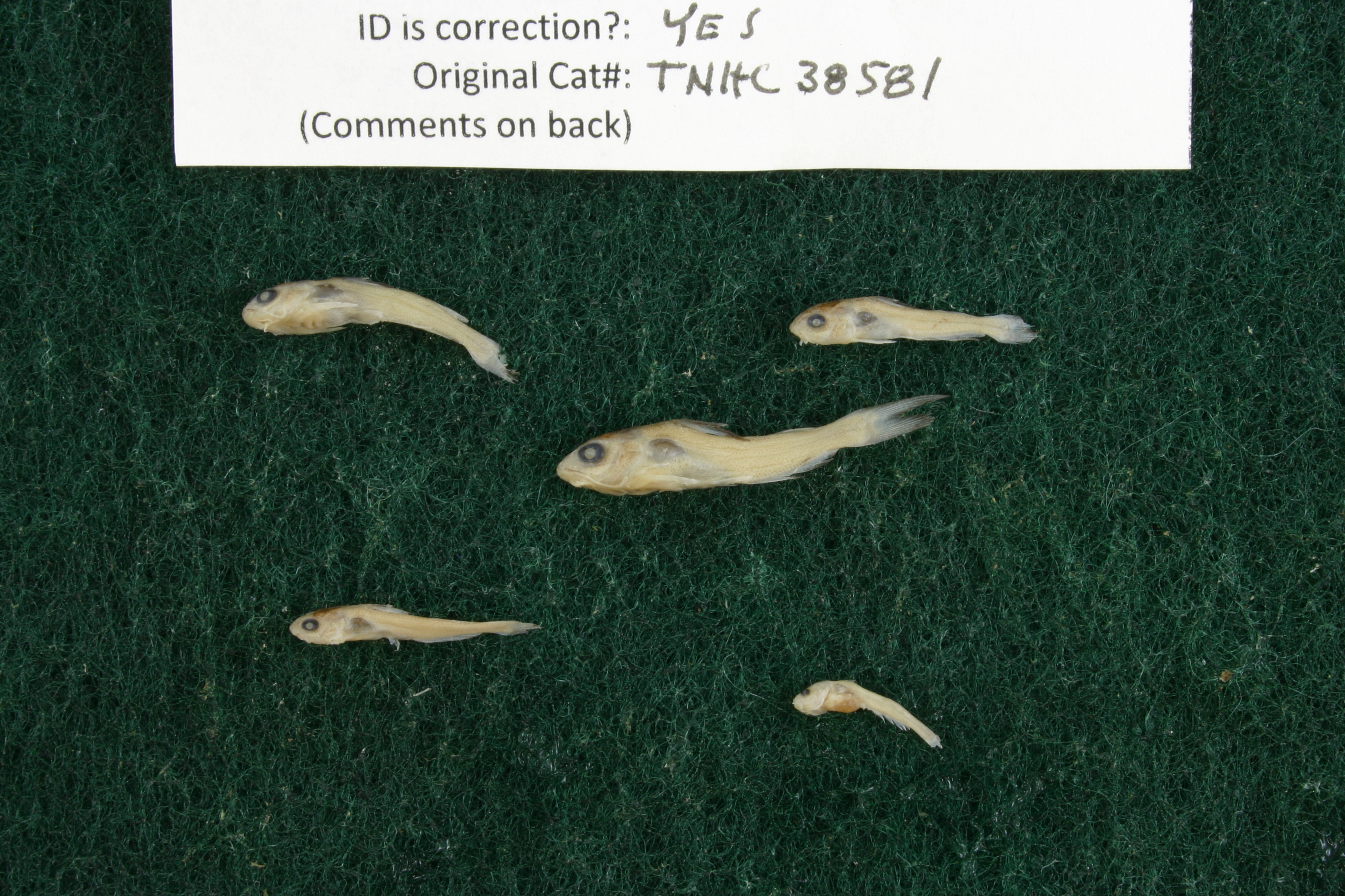Specimen examined and Id'ed for FoTX project. | ID notes: 26 or 27 to 29 anal rays in 3 specimens; MinSL(mm): 10.75; MaxSL(mm): 22.04; Jar: 8 oz; Specimen condition: fair; Mutations: none; Count Male: ; Count female: ; Extern parasites: n