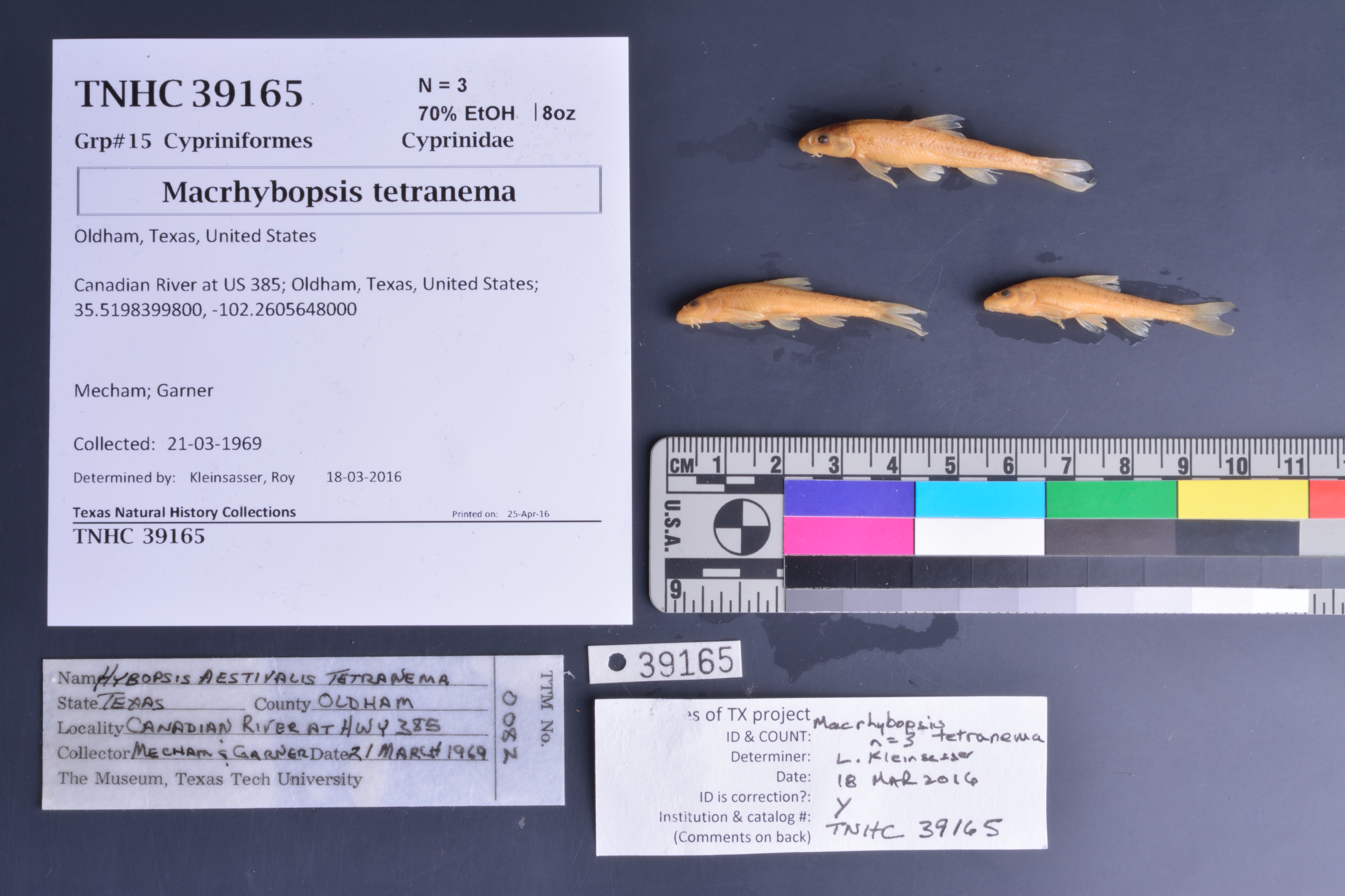 RemarksDonation from Texas Tech University tag name reads: Hybopsis aestivalis tetranema