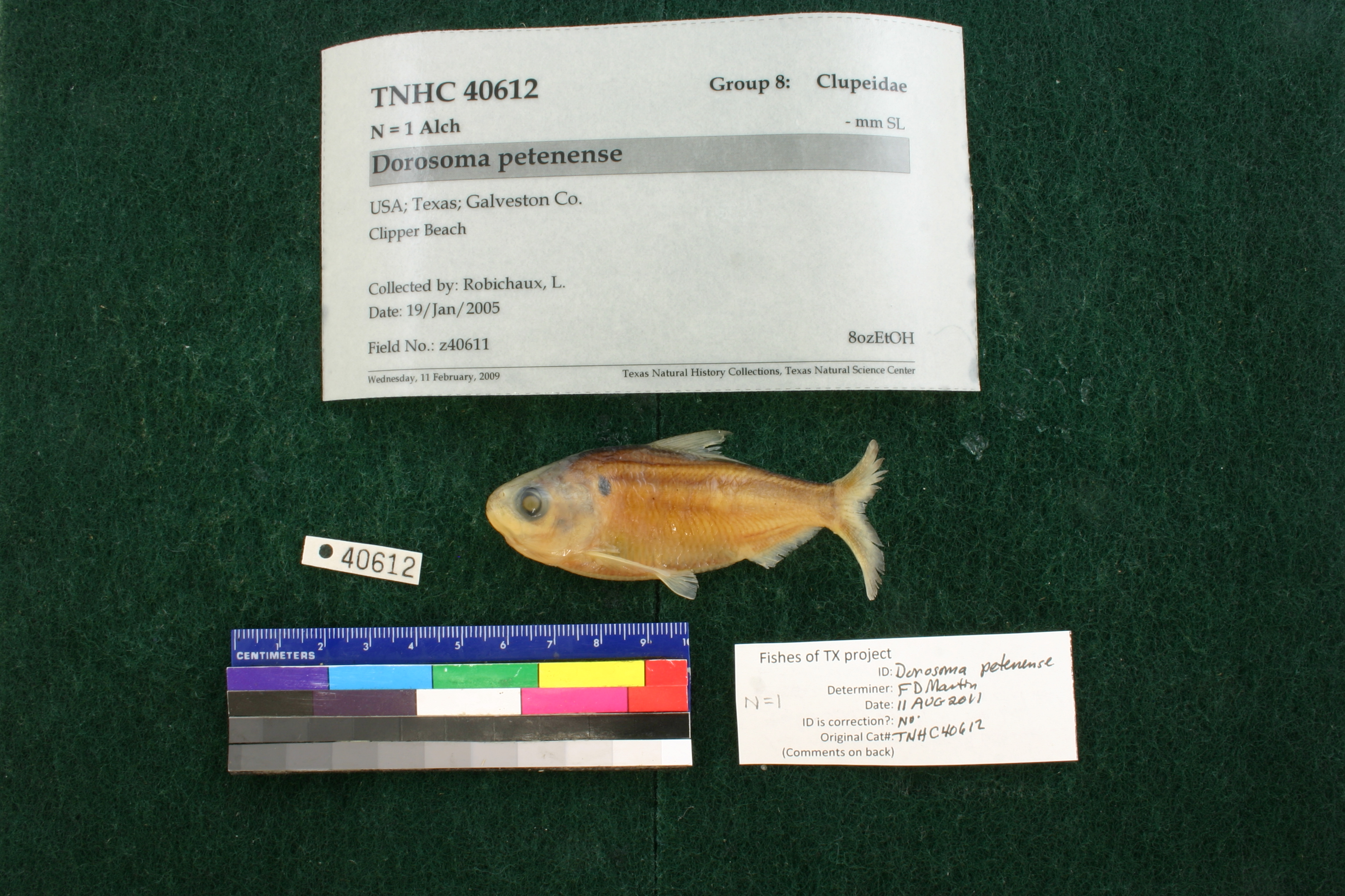 Specimen examined and Id'ed for FoTX project. | ID notes: anal rays either 22 or 23 (one ray may be split) which is too low according to Hubbs et al. 2008 but not according to Miller; MinSL(mm): 75.89; MaxSL(mm): ; Jar: 8 oz; Specimen condition: good; Mutations: none; Count Male: ; Count female: ; Extern parasites: n