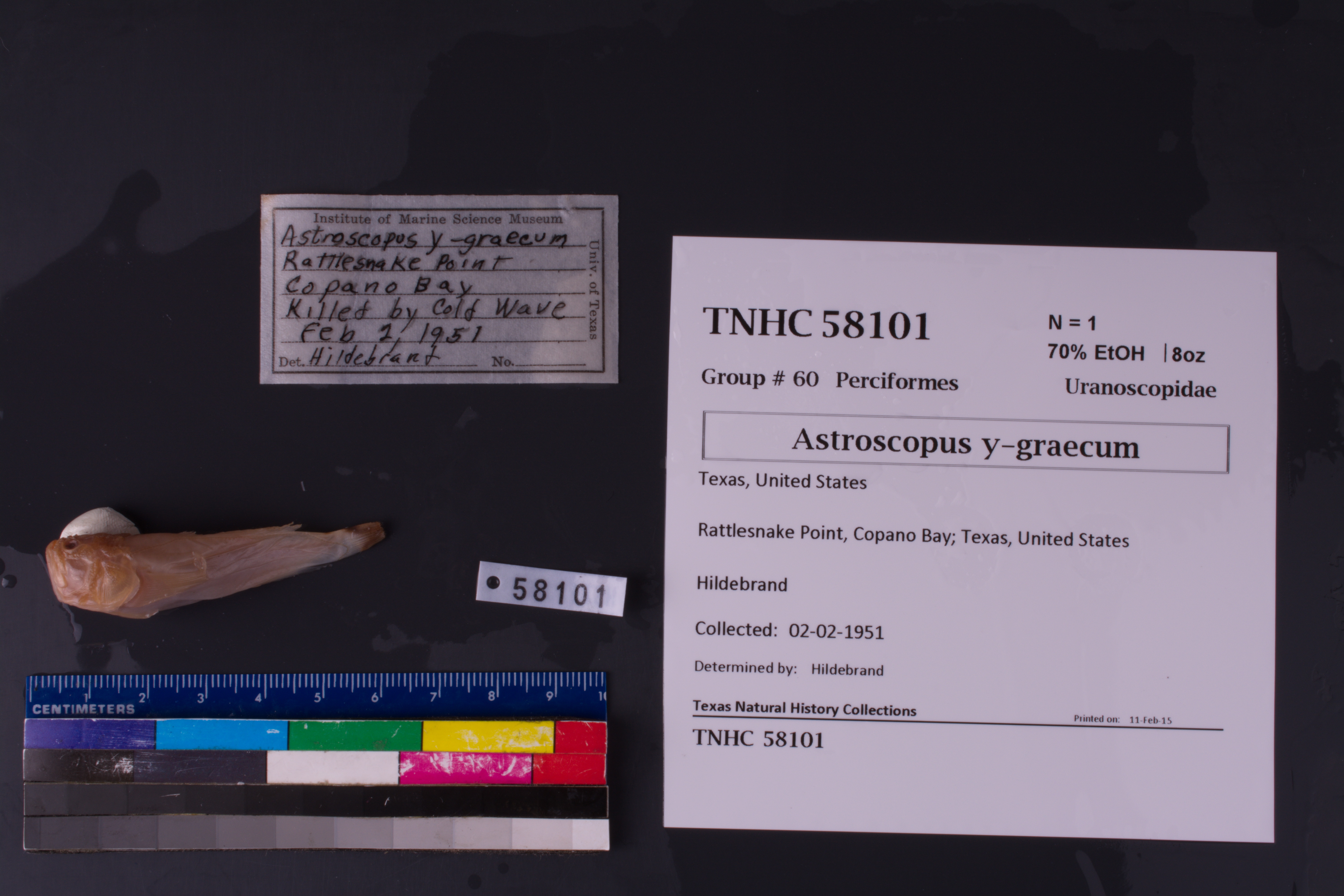 Occurrence RemarksUpon IMS cleanup project, it was found that TNHC# 19770 contained 3 vials with different locality info (same species). IMS ledger shows 3 entries for IMS# 279. Each vial corresponds correctly to each ledger entry. Separated vials into 3 jars and re-catalogued TNHC# 58101 to reflect third locality data entry in ledger.