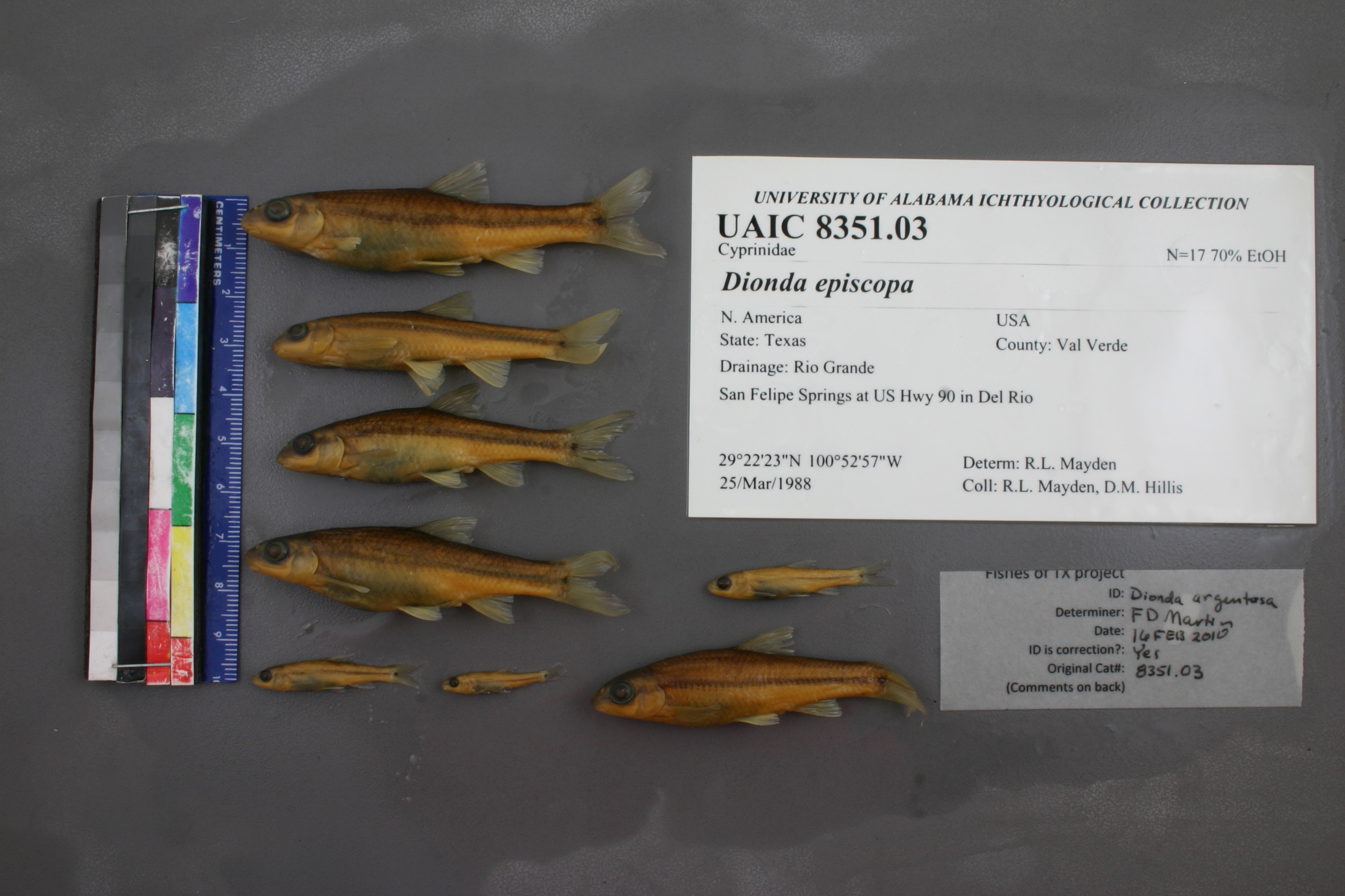 ID Status: Specimen examined and ID'ed for FoTX projectID Comments: caudal spot round, no diamond pattern on backGeoref Remark: Extent covers all springs in San Felipe Springs complexID Confidence: high