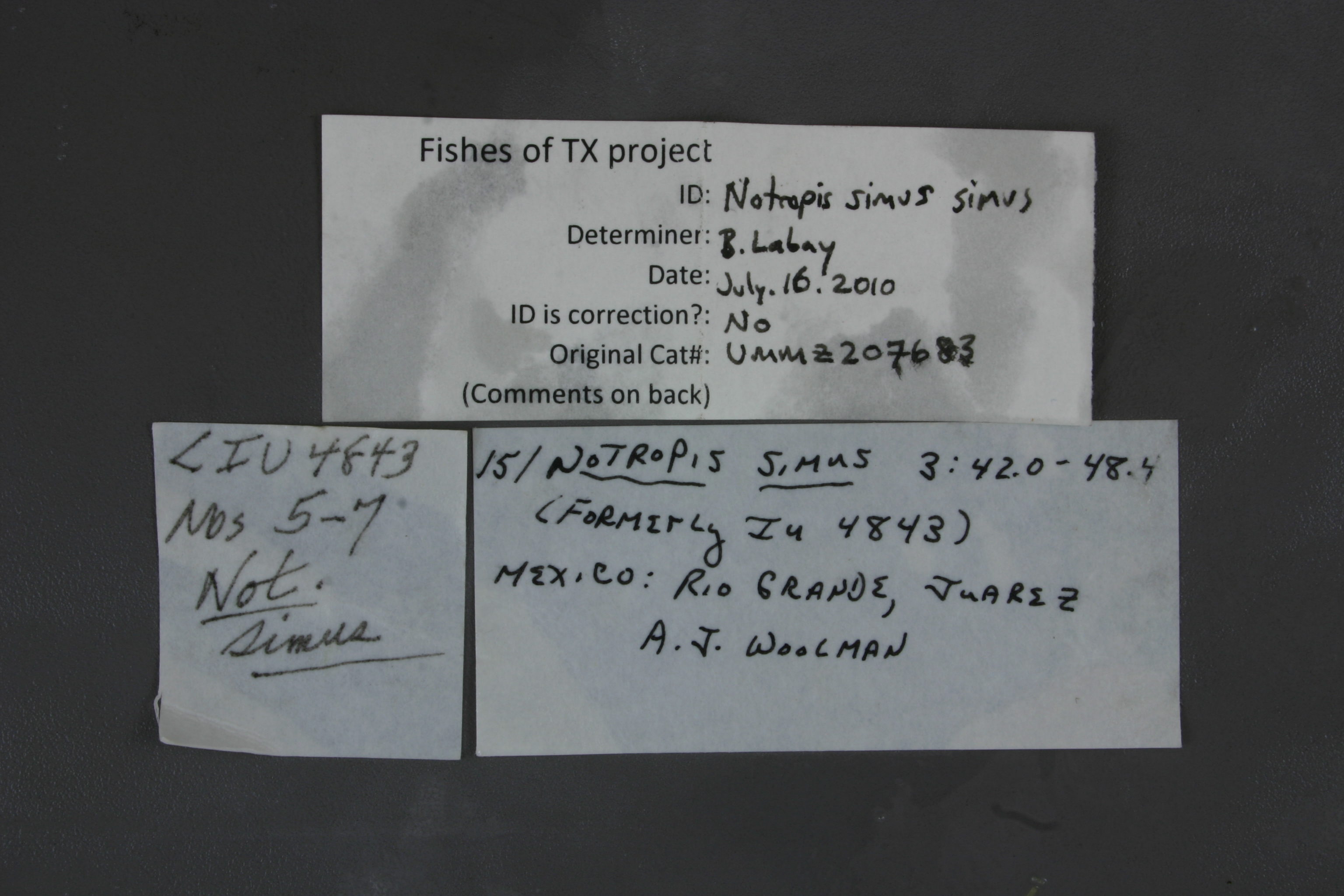 ID Status: Specimen examined and ID'ed for FoTX projectID Comments: anal ray count = 10(2)ID Confidence: high