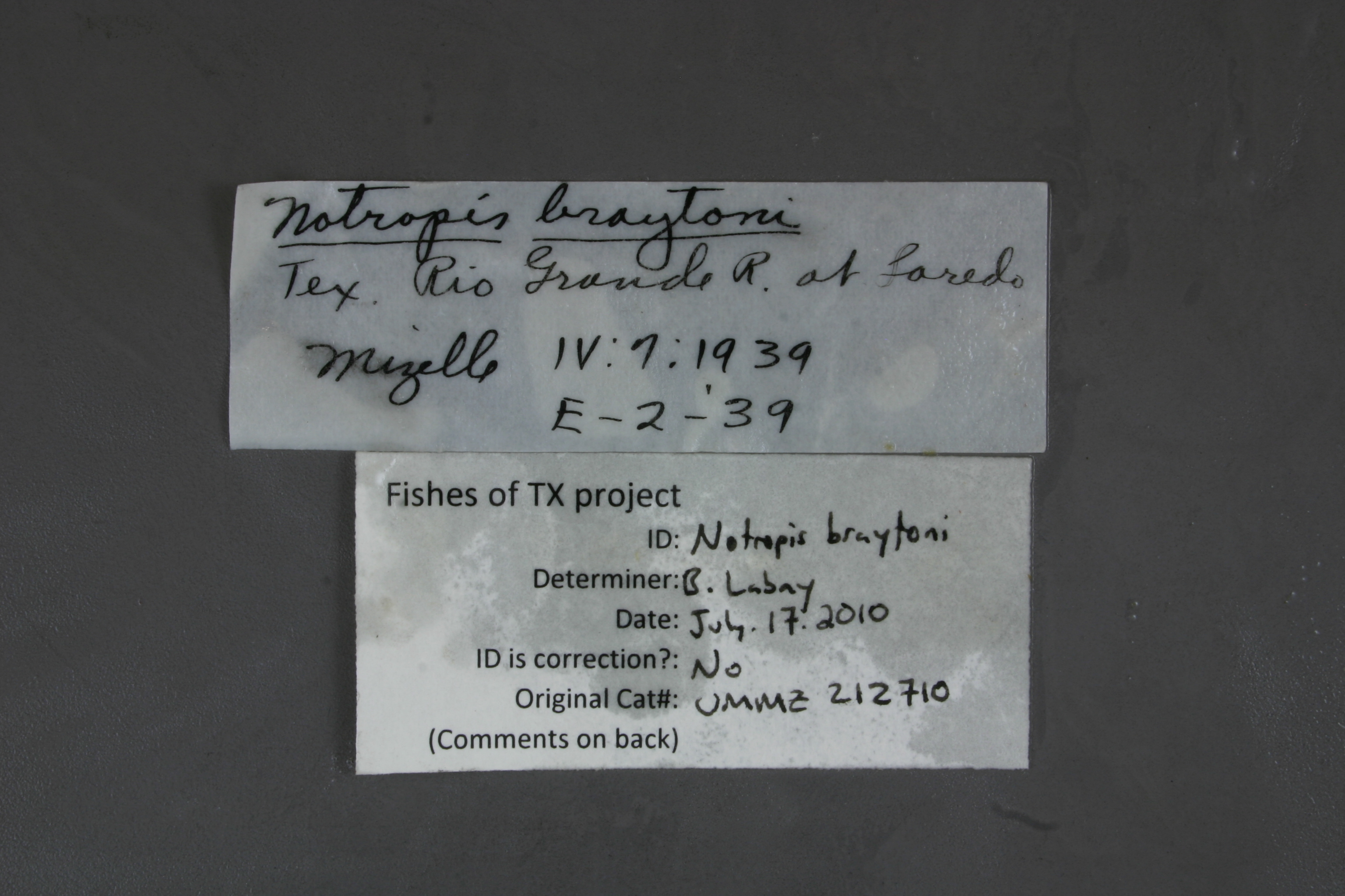 Georef Annotation: Contacted Doug Nelson (at UMMZ) regarding this record and he was able to provide corrected locality description information. Correct locality should read: Webb County, Rio Grande at Laredo. Updated georeference to reflect this.