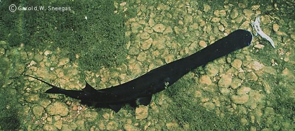 Body shark-like with prominent paddle shaped snout and heterocercal tail (Boschung and Mayden 2004).